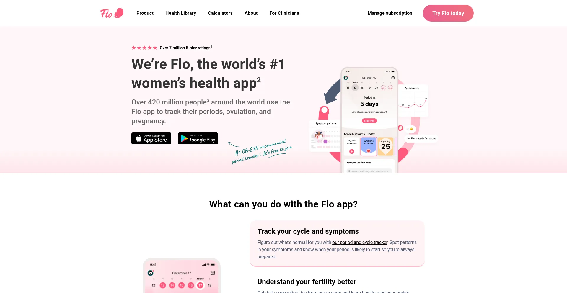 flo.health 提供 Android 设备移动应用程序,表明平台存在已扩展到网络服务之外。