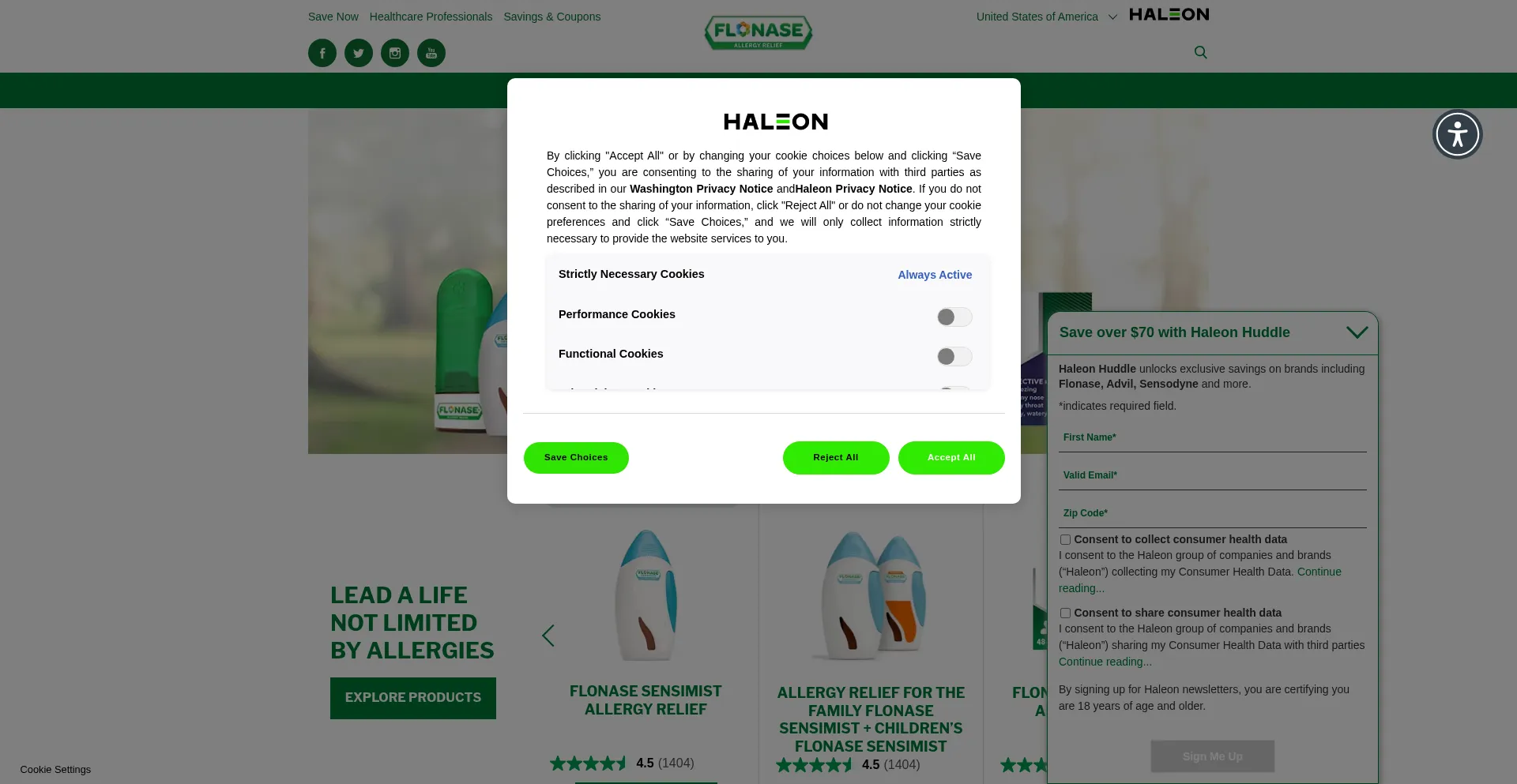 该网站实现符合GDPR或CCPA等隐私法规的cookie同意机制。这表明 flonase.com 遵守数据保护标准并为用户提供对个人数据收集实践的控制。
