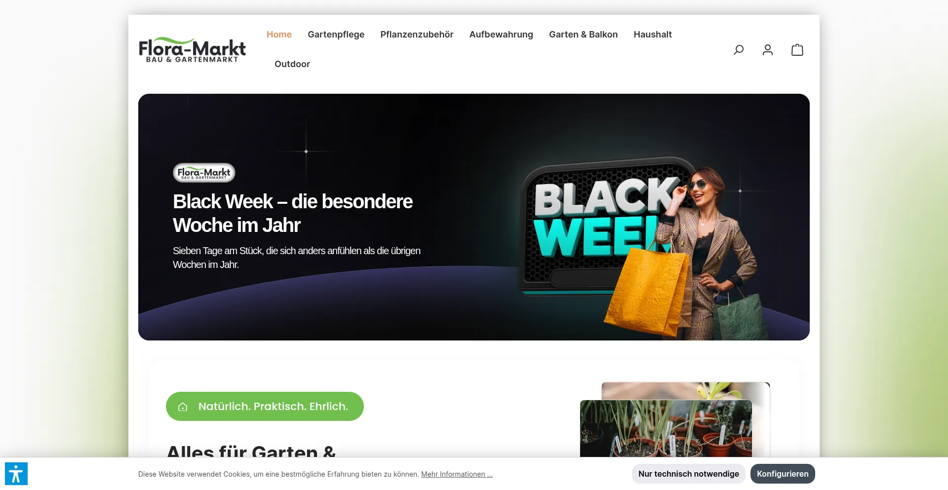 分析表明 flora-markt.com 作为电子商务平台运营,促进商品或服务的在线交易。该网站实现了购物车功能、支付处理系统和产品目录功能,这些是商业零售运营的典型特征。