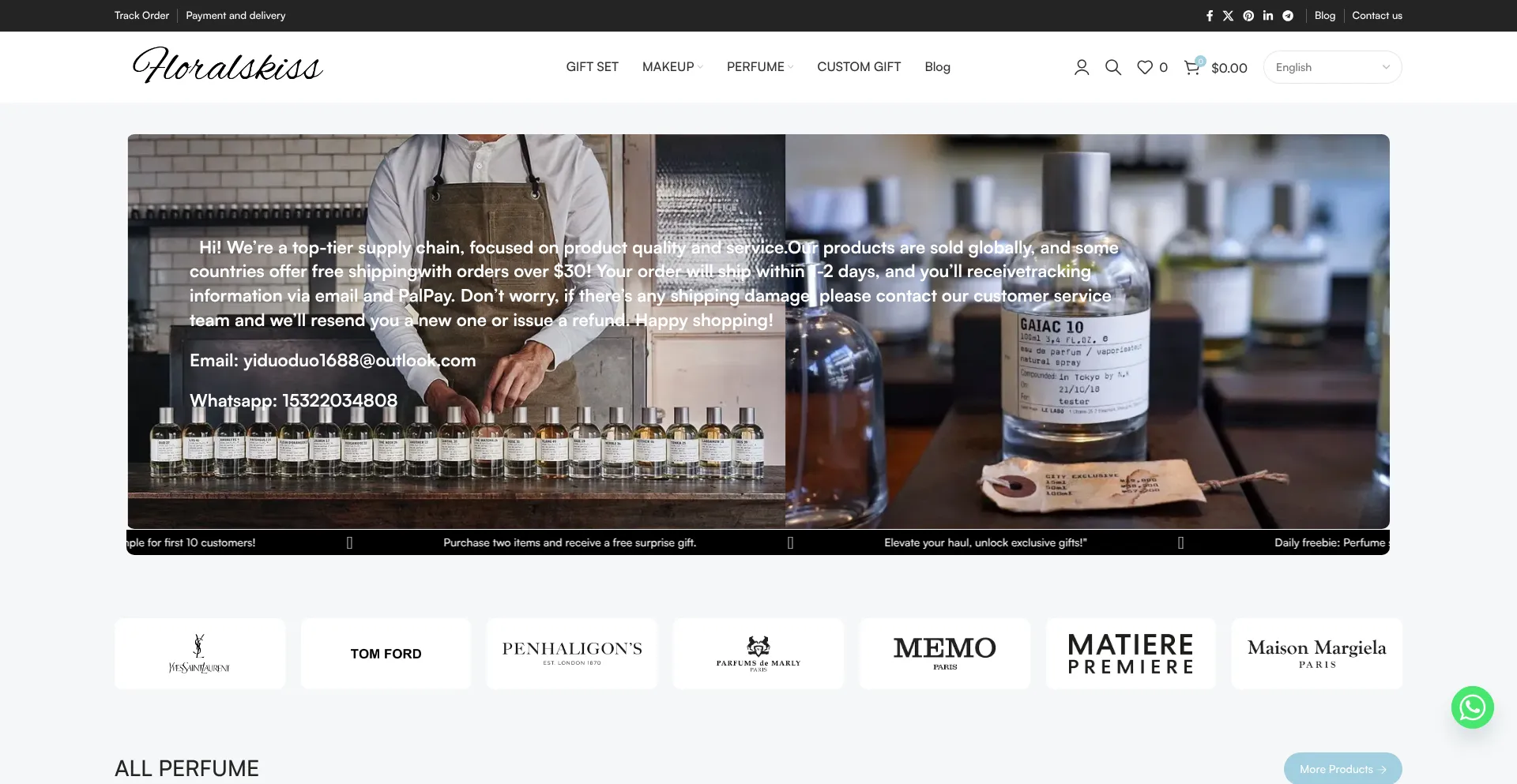 该网站利用流行产品名称和品牌来吸引流量并产生用户兴趣。这些产品可能通过促销活动或折扣策略提供,旨在增加 floralskiss.com 的访客参与度和转化率。