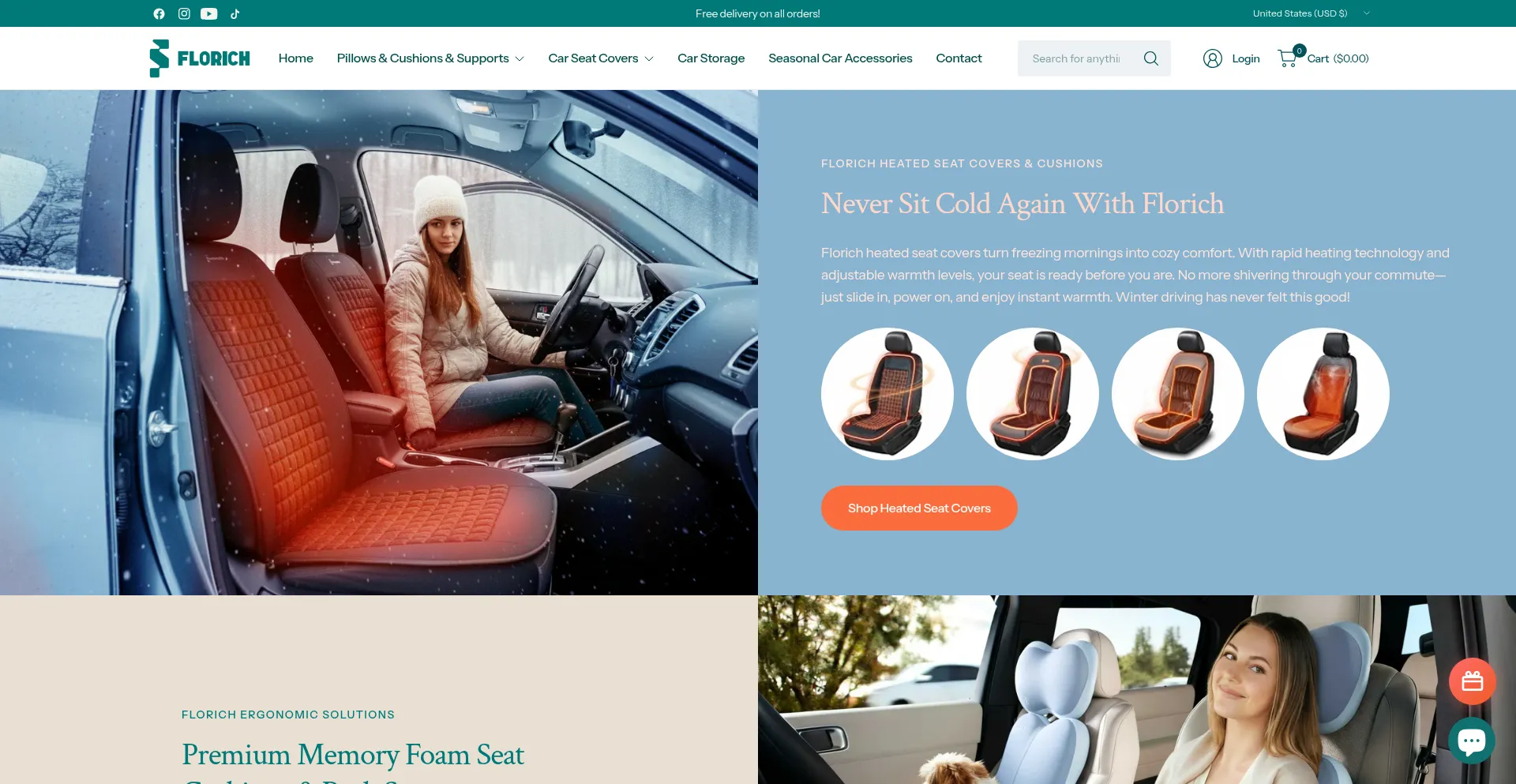 Florich delivers premium automotive accessories and custom seat covers designed for style, comfort, and durability. Discover a range of premium lumbar cushions, pillows, and lum...