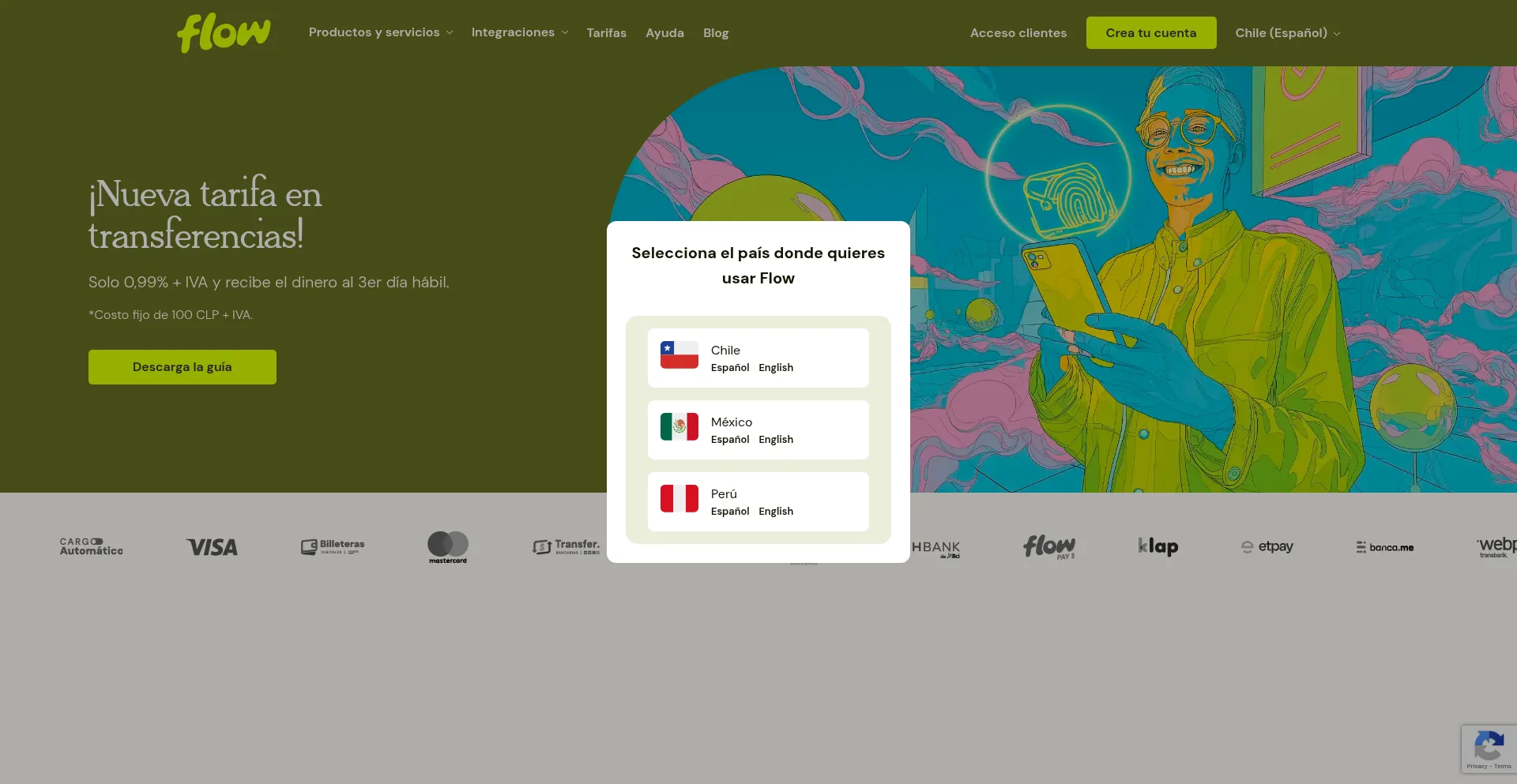 该网站实现数据收集表单,请求个人信息,包括姓名、电子邮件地址、电话号码或其他敏感详细信息。用户应验证 flow.cl 的合法性并在提交个人数据前查看隐私政策。