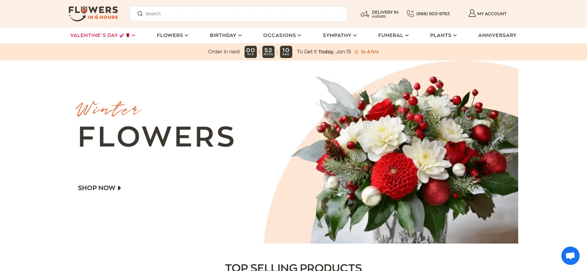 网站 flowersin4hours.com 使用免费电子商务平台解决方案,这可能表明成本意识运营,但也可能暗示与企业级解决方案相比在安全功能、客户支持或高级功能方面的限制。