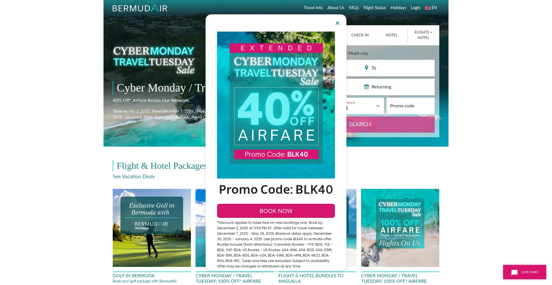 网站上存在社交媒体链接表明 flybermudair.com 在社交媒体上维护官方账户,这是可信度和参与度的积极信号。