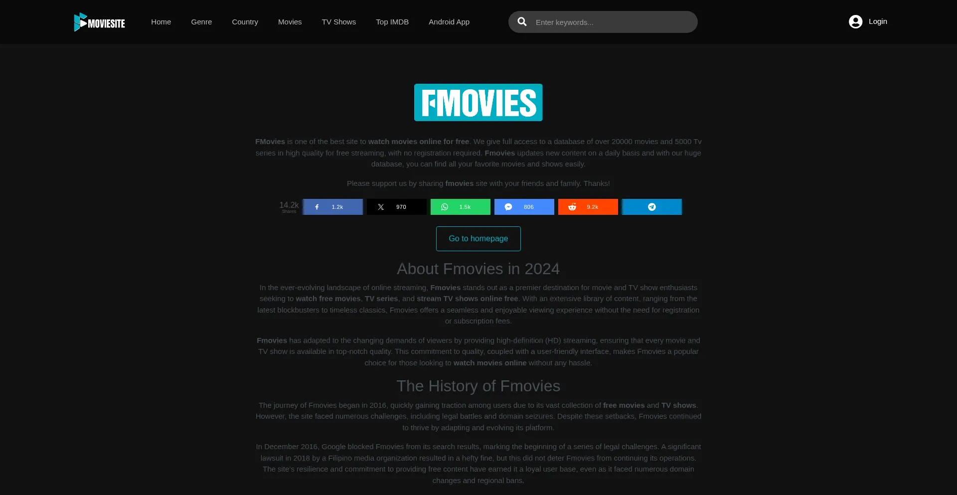 帮助保护他人,快在社交媒体上分享此页面吧!知道fmoviesite.tv的人越多,骗子就越难得逞。 通过在社交媒体上分享此页面,帮助更多人发现可靠的fmoviesite.tv吧!