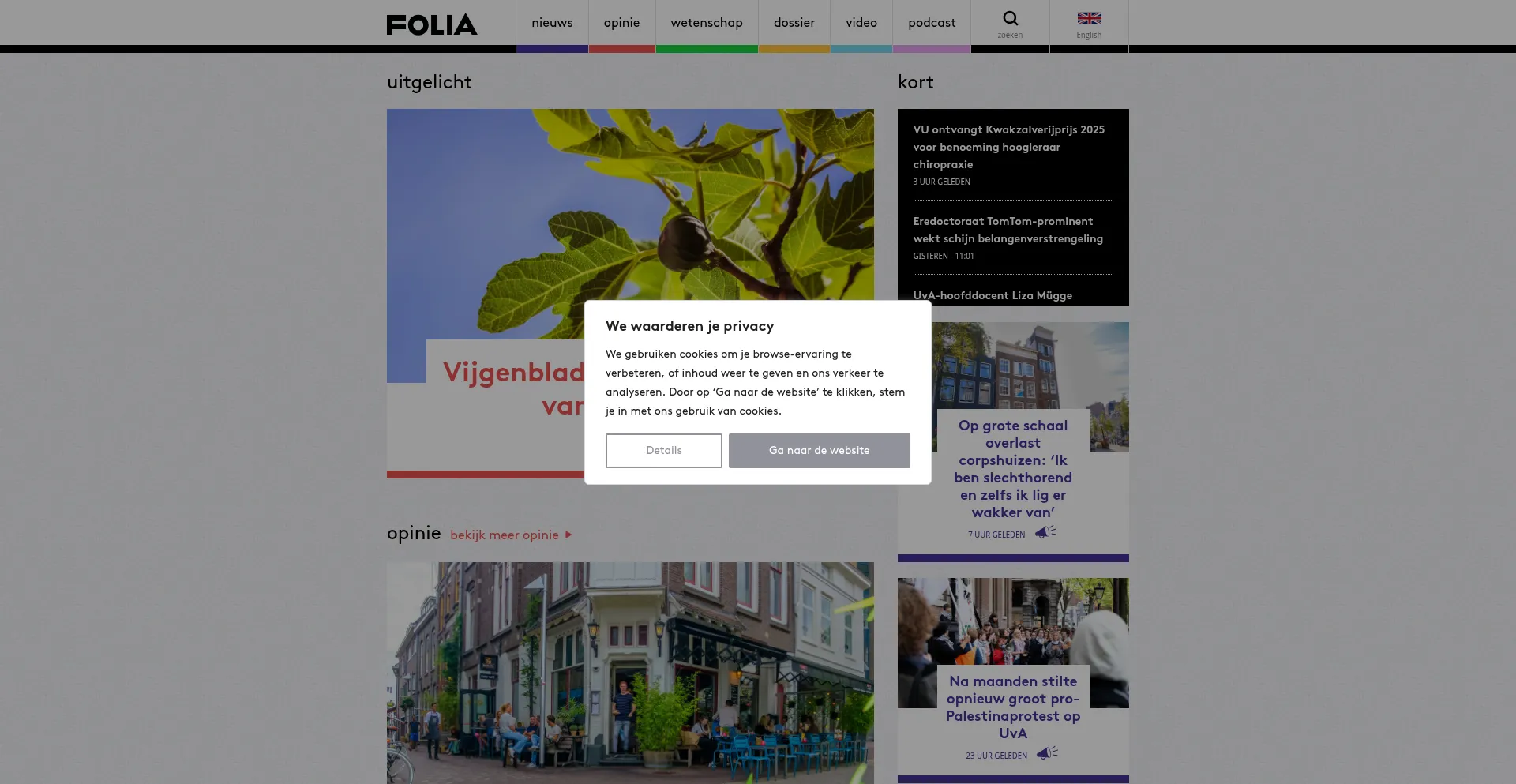 该网站实现符合GDPR或CCPA等隐私法规的cookie同意机制。这表明 folia.nl 遵守数据保护标准并为用户提供对个人数据收集实践的控制。