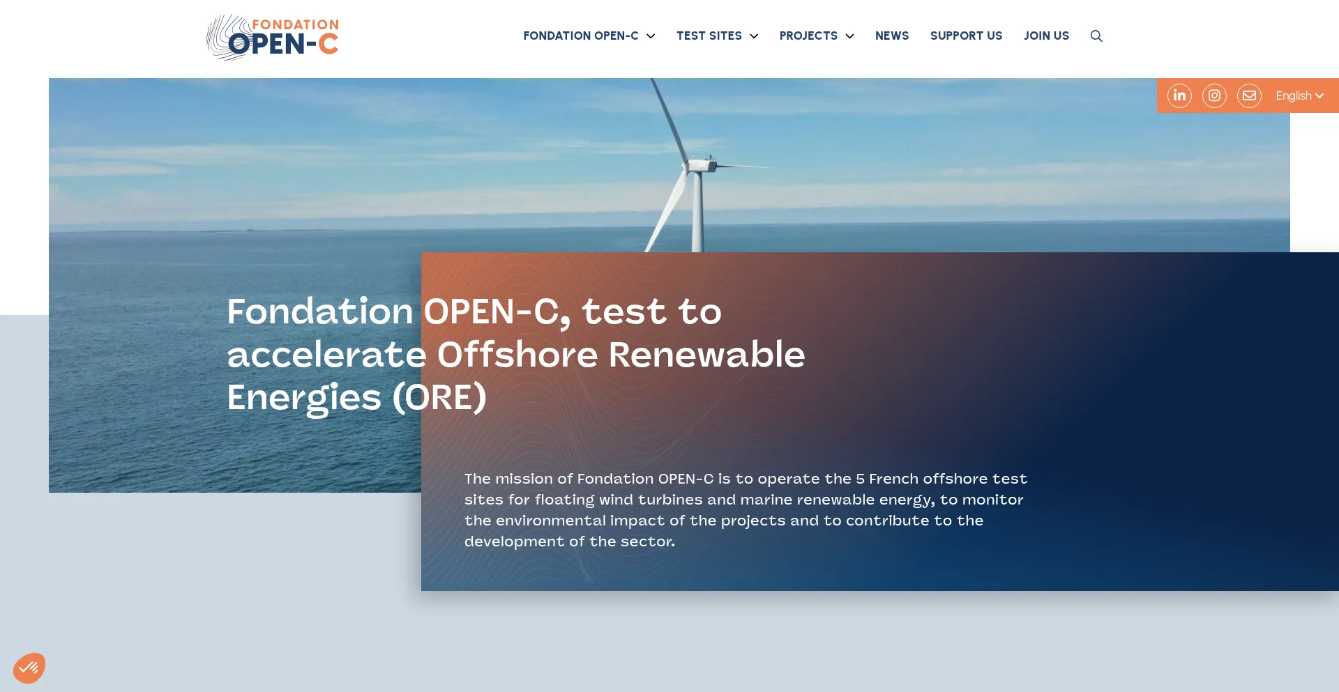 Fondation OPEN-C, test to accelerate Offshore Renewable Energies (ORE) with 5 offshore test sites in France.