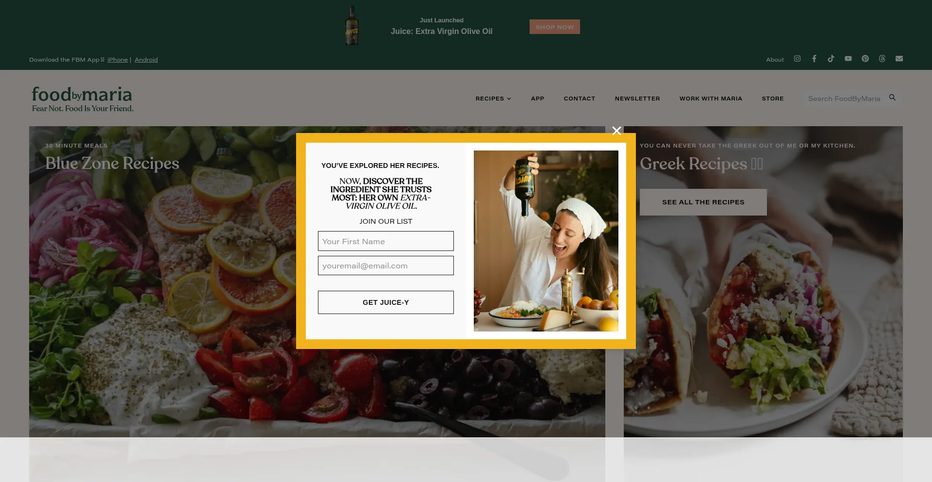 网站上存在社交媒体链接表明 foodbymaria.com 在社交媒体上维护官方账户,这是可信度和参与度的积极信号。
