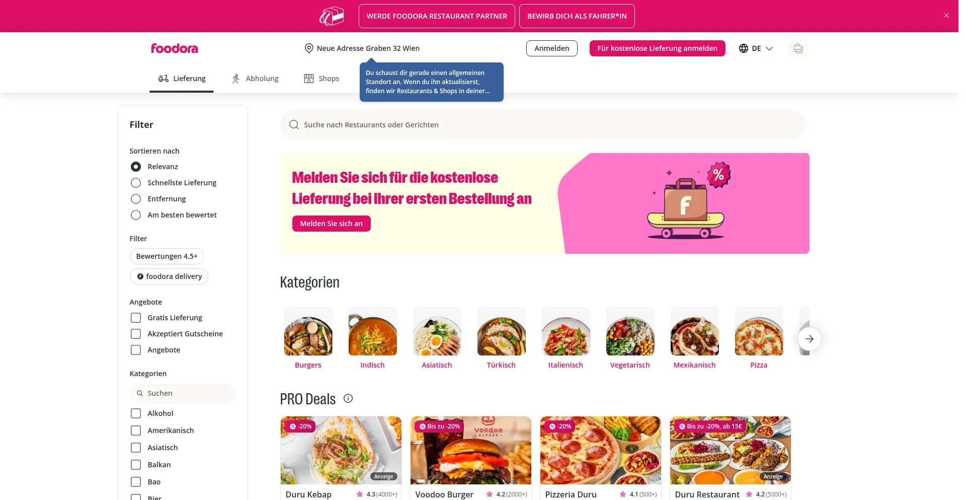 该网站实现数据收集表单,请求个人信息,包括姓名、电子邮件地址、电话号码或其他敏感详细信息。用户应验证 foodora.at 的合法性并在提交个人数据前查看隐私政策。