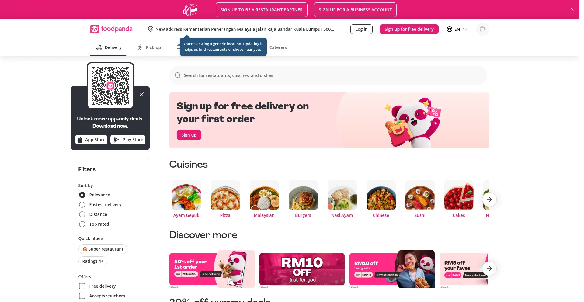 网站上存在社交媒体链接表明 foodpanda.my 在社交媒体上维护官方账户,这是可信度和参与度的积极信号。