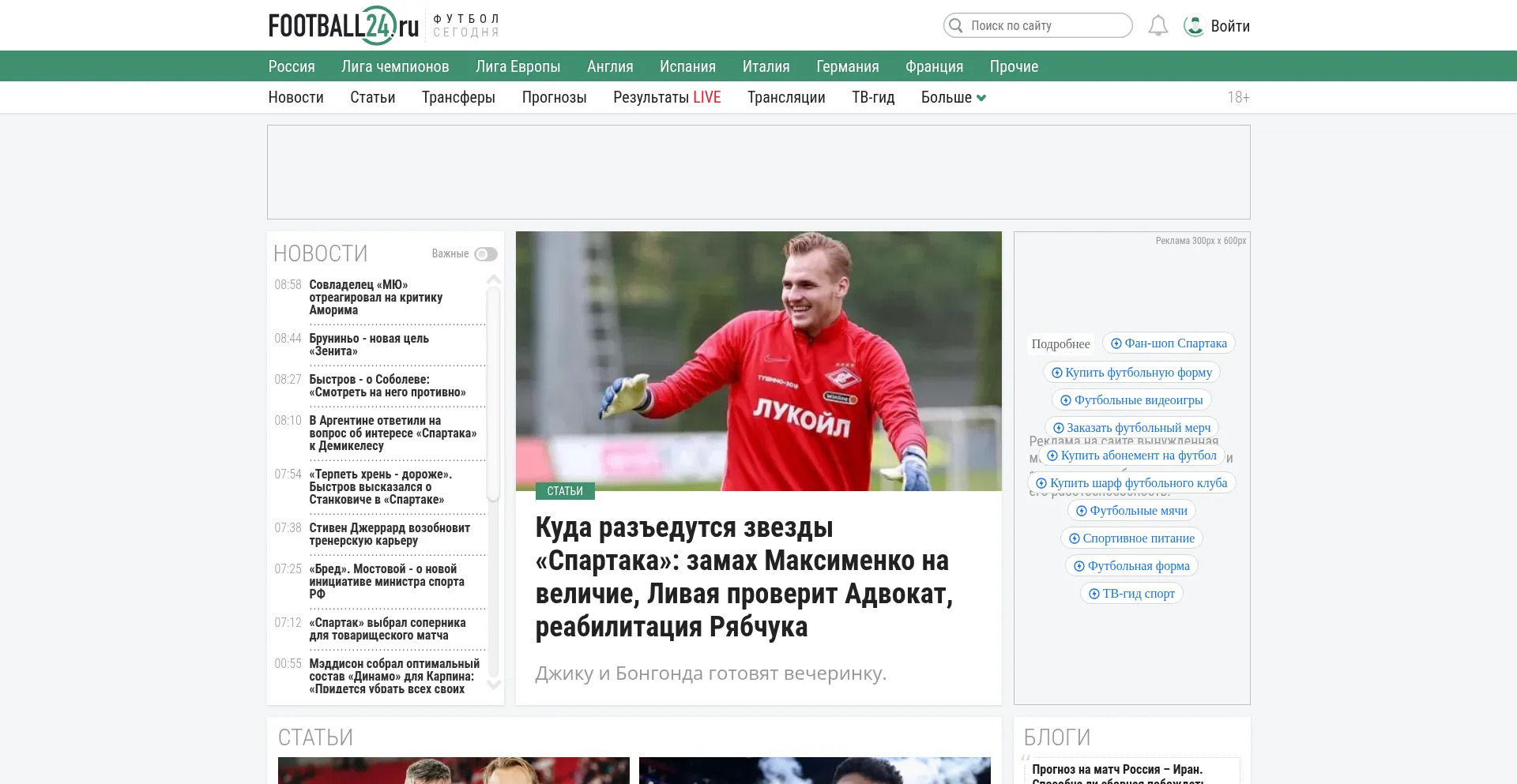 «Футбол 24» - самые свежие новости футбола на сегодня в России и мире. Трансферы, прогнозы, актуаль...