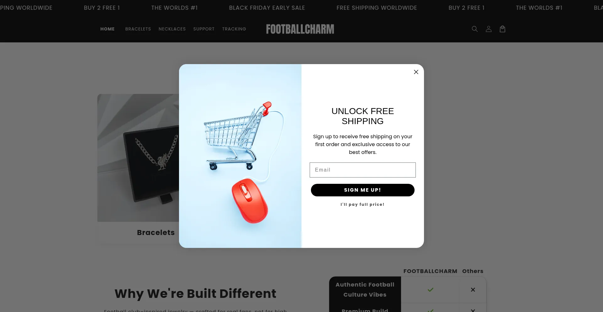 网站 footballcharm.com 使用免费电子商务平台解决方案,这可能表明成本意识运营,但也可能暗示与企业级解决方案相比在安全功能、客户支持或高级功能方面的限制。