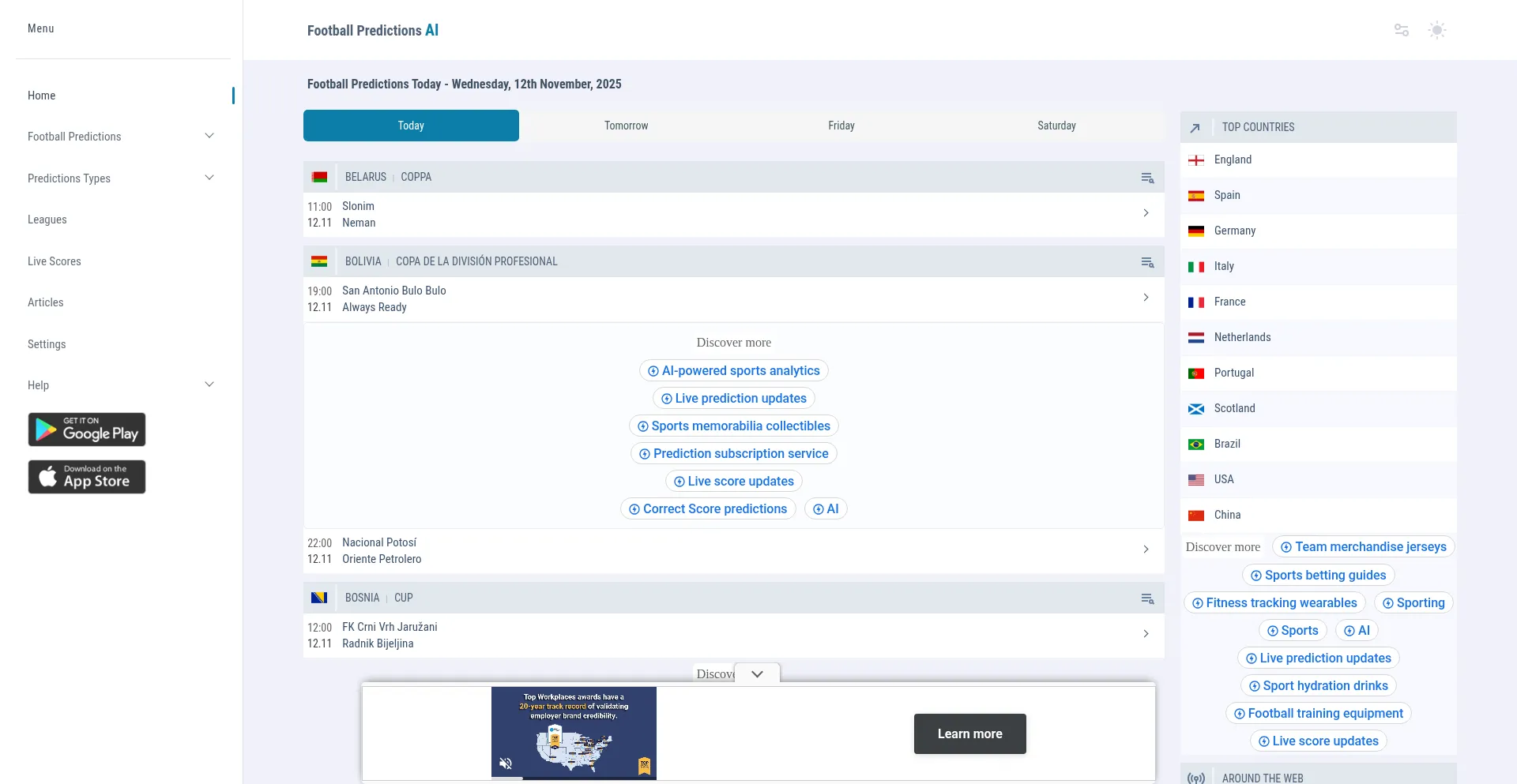Football Predictions - Wednesday, 12th November, 2025 - Football Predictions AI