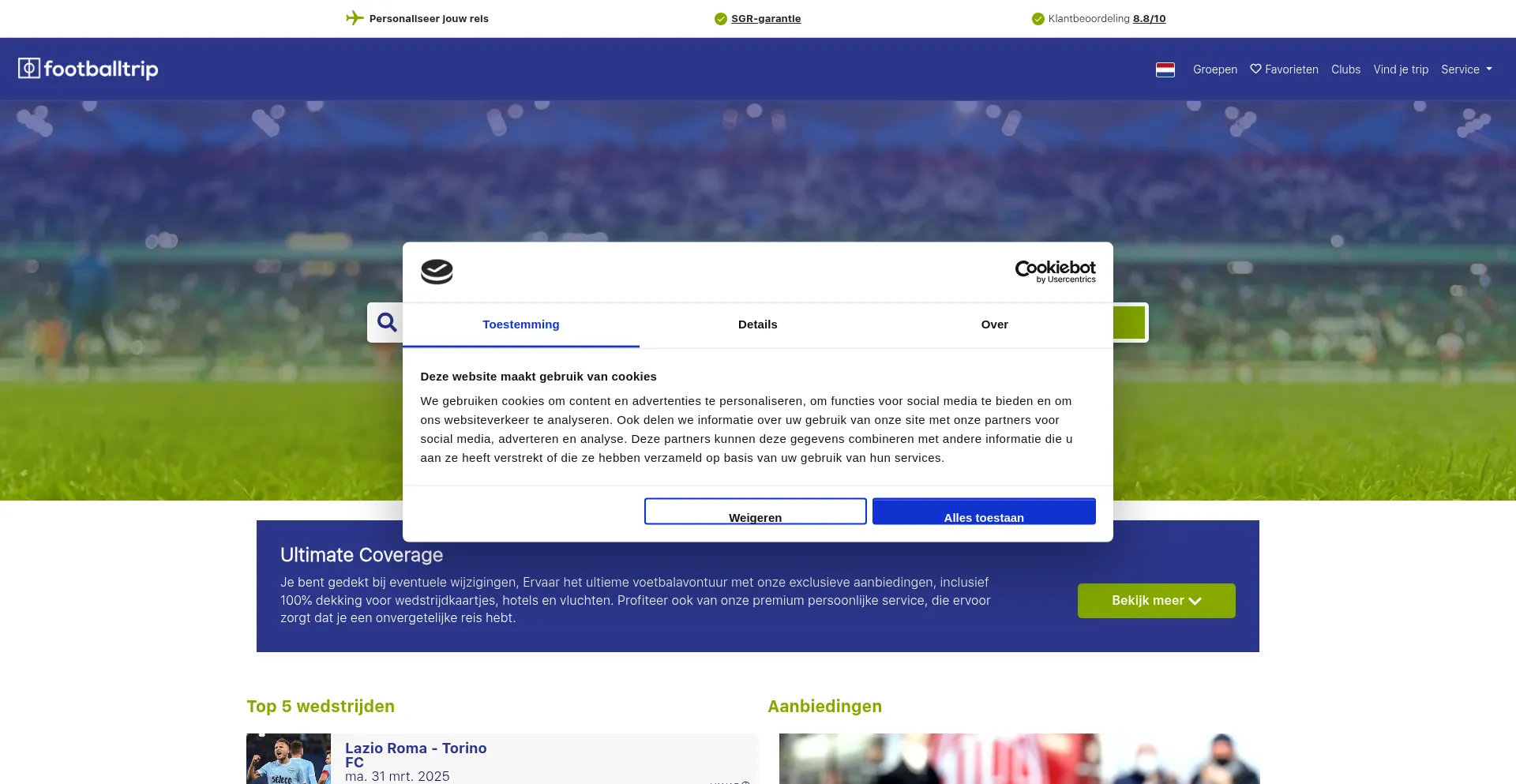 该网站实现符合GDPR或CCPA等隐私法规的cookie同意机制。这表明 footballtrip.be 遵守数据保护标准并为用户提供对个人数据收集实践的控制。