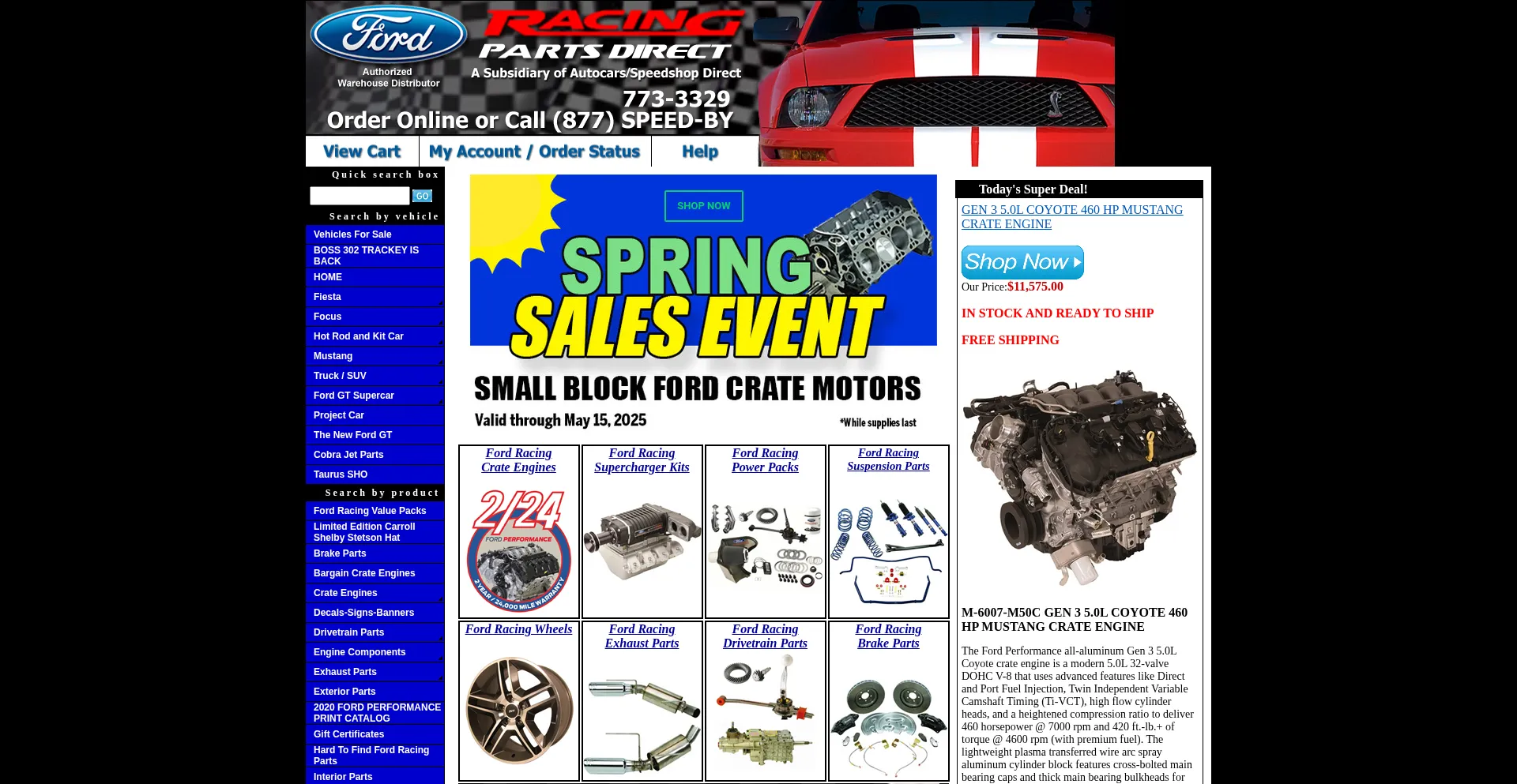 Ford Racing Parts: Mustang Power Packs, Crate Engines, Motors, Superchargers, Handling Packs, Shelby Parts, Wheels, Brake Kits, SVT parts, and more.