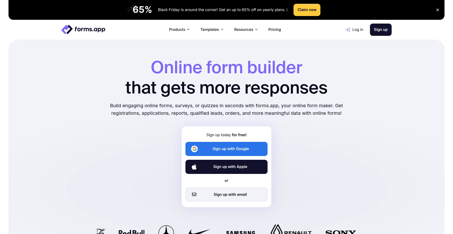 forms.app 拥有可用的 iOS 移动应用程序,表明为 Apple 设备用户提供跨平台可访问性。