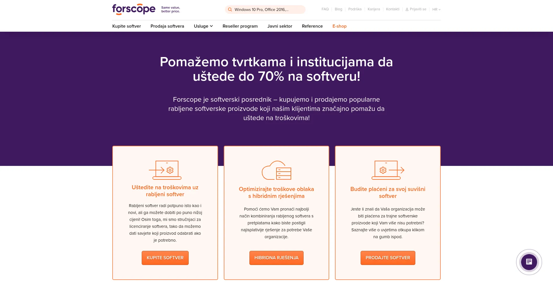 Forscope je softverski posrednik koji pomaže tvrtkama i javnim institucijama uštedjeti do 70% na troškovima softvera zahvaljujući rabljenim softverskim rješenjima prilagođ...