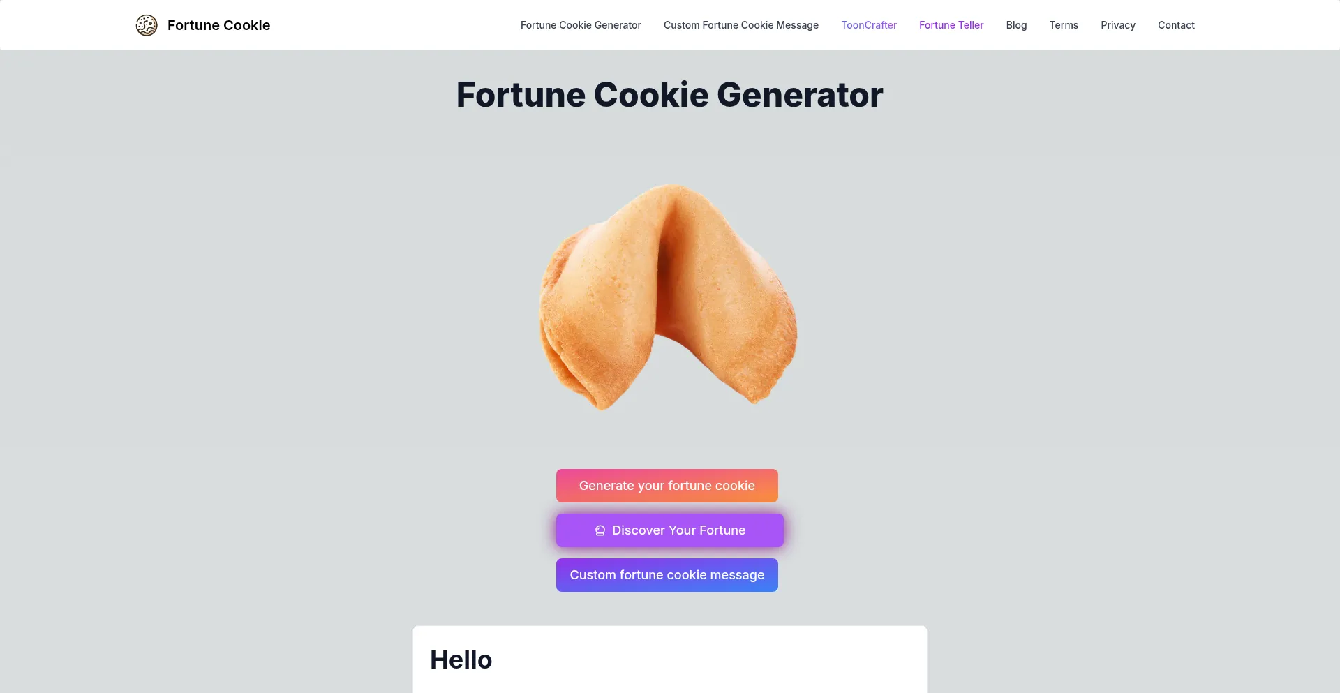 Generate you fortune cookie free online. Or custom fortune cookie with 1 click. FortuneCookieGenerator.com