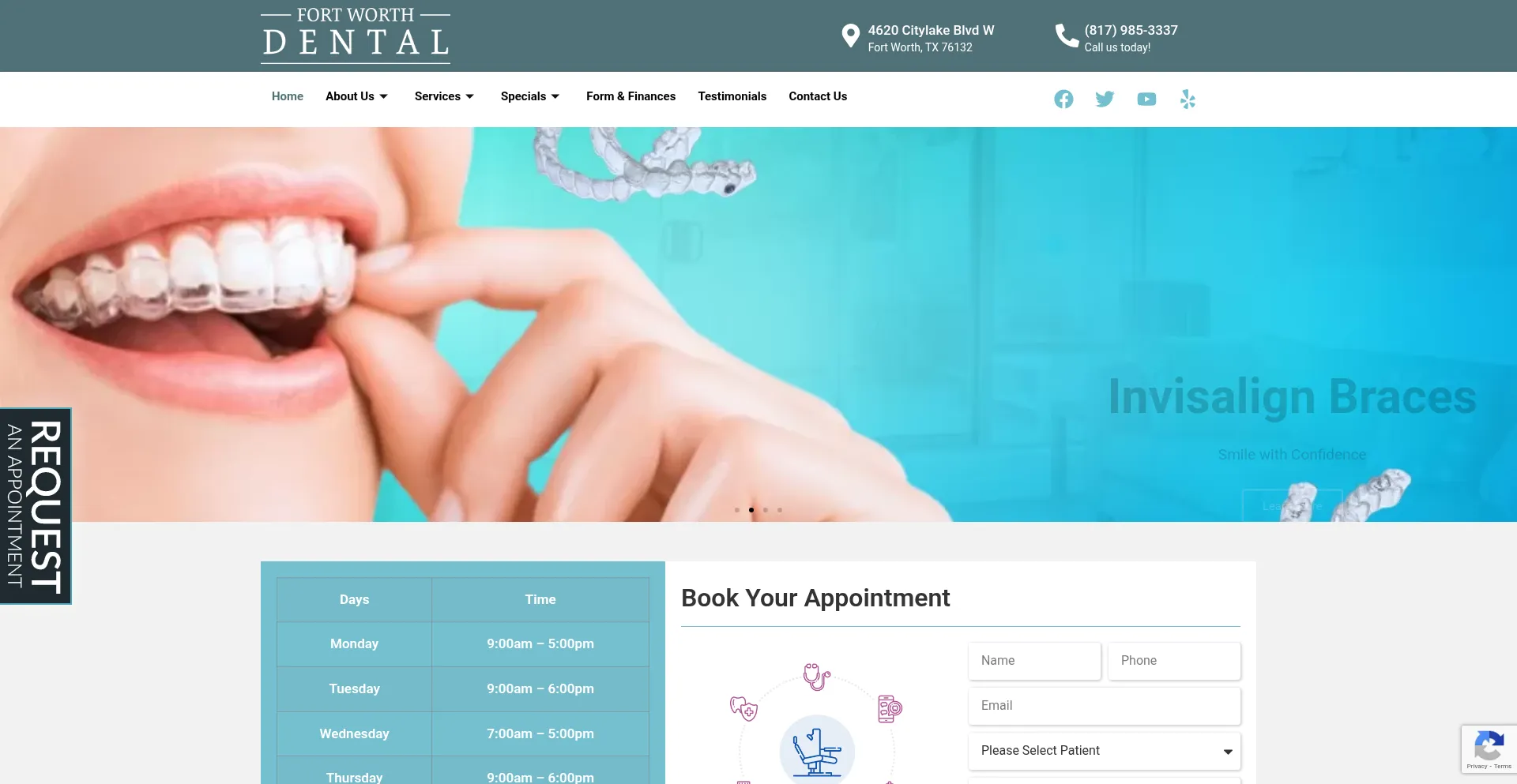 网站上存在社交媒体链接表明 fortworthdental.com 在社交媒体上维护官方账户,这是可信度和参与度的积极信号。