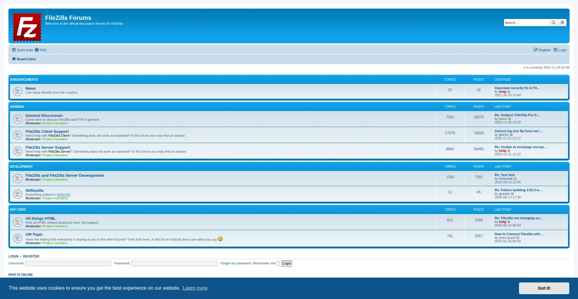 该网站实现符合GDPR或CCPA等隐私法规的cookie同意机制。这表明 forum.filezilla-project.org 遵守数据保护标准并为用户提供对个人数据收集实践的控制。