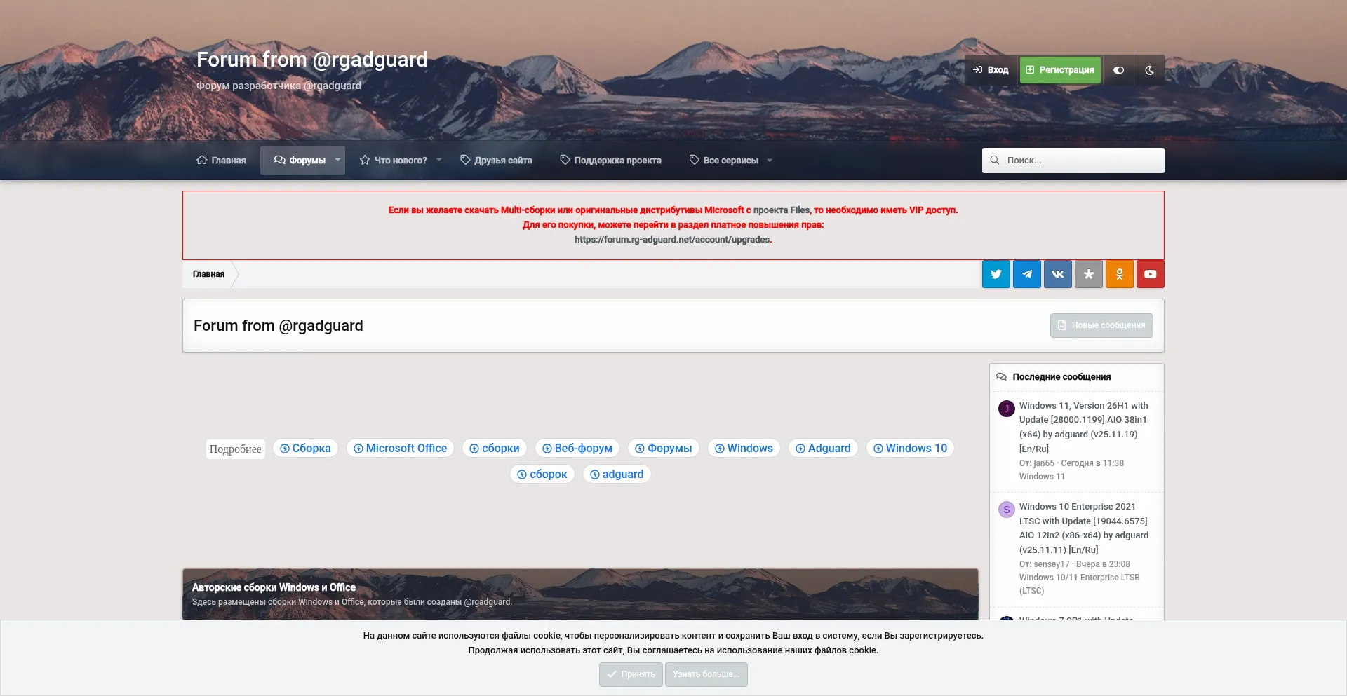 网站上存在社交媒体链接表明 forum.rg-adguard.net 在社交媒体上维护官方账户,这是可信度和参与度的积极信号。