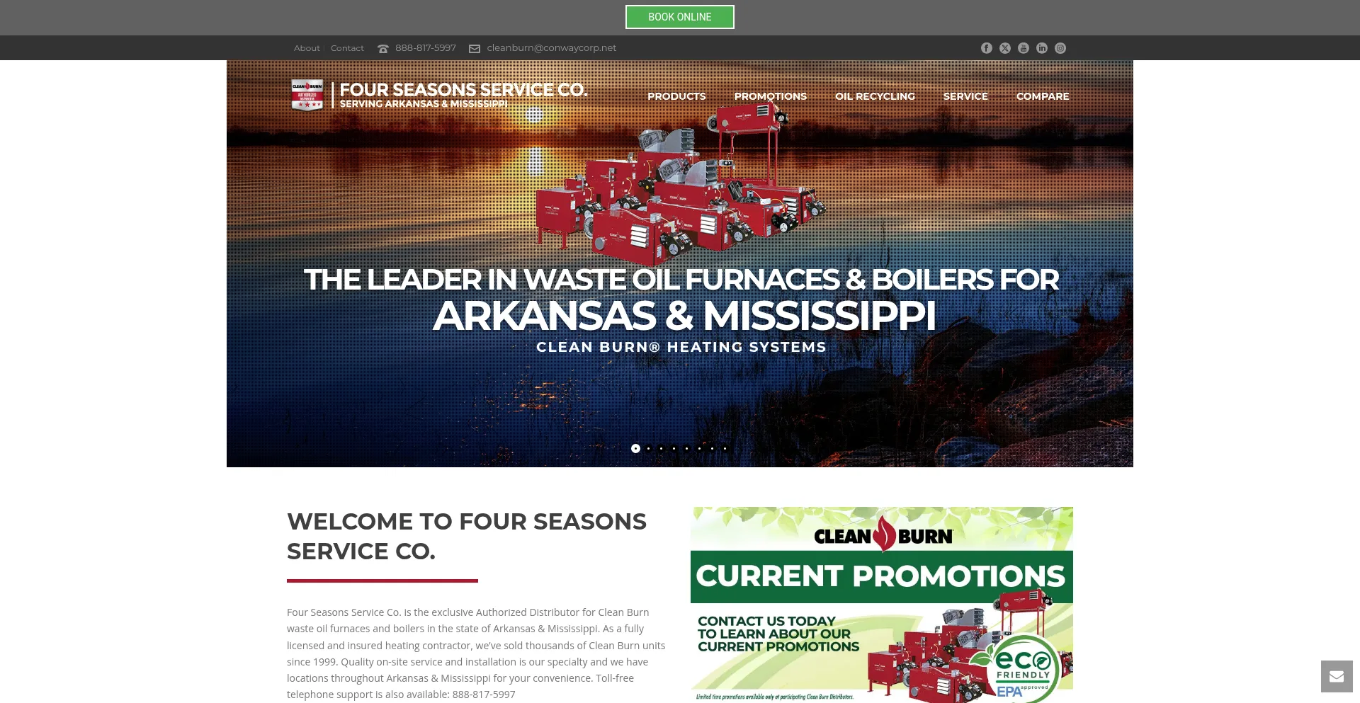 Four Seasons Service Co. serves Arkansas & Mississippi offering Clean Burn’s product line of UL listed waste oil fired furnaces and boilers.
