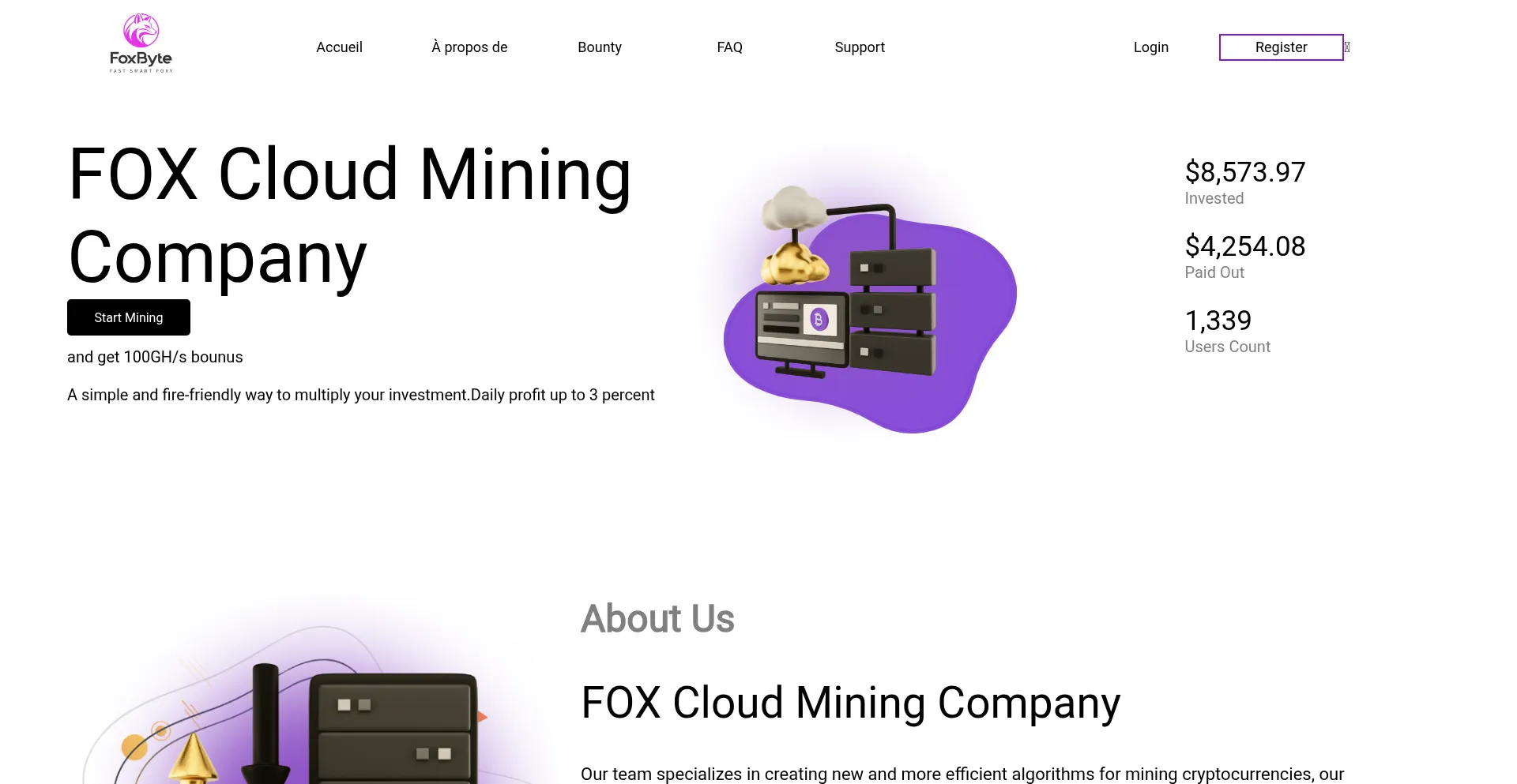 网站 foxmining.online 可能提供云挖矿服务或加密货币挖矿投资。一些平台提供合法的挖矿租赁服务,而其他平台可能使用虚假的挖矿仪表板来显示无法提取的虚拟收益。
