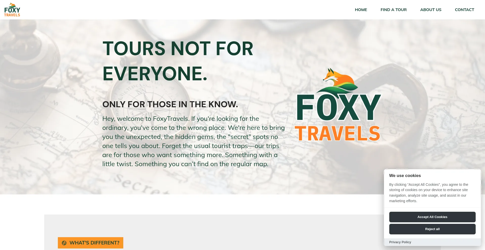 该网站实现符合GDPR或CCPA等隐私法规的cookie同意机制。这表明 foxytravels.com 遵守数据保护标准并为用户提供对个人数据收集实践的控制。