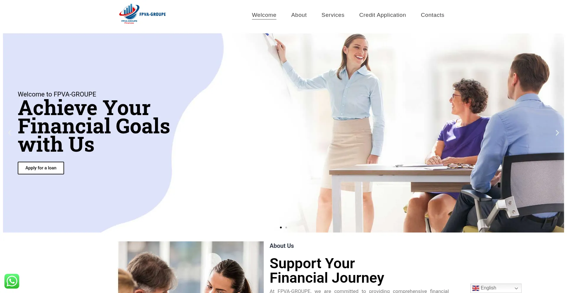 Bienvenue chez FPVA-GROUPEAtteignez Vos Objectifs Financiers avec NousDemandez un créditUn Soutien Financier Fiable pour Vos BesoinsDemandez un crédit À propos de nous Favori...