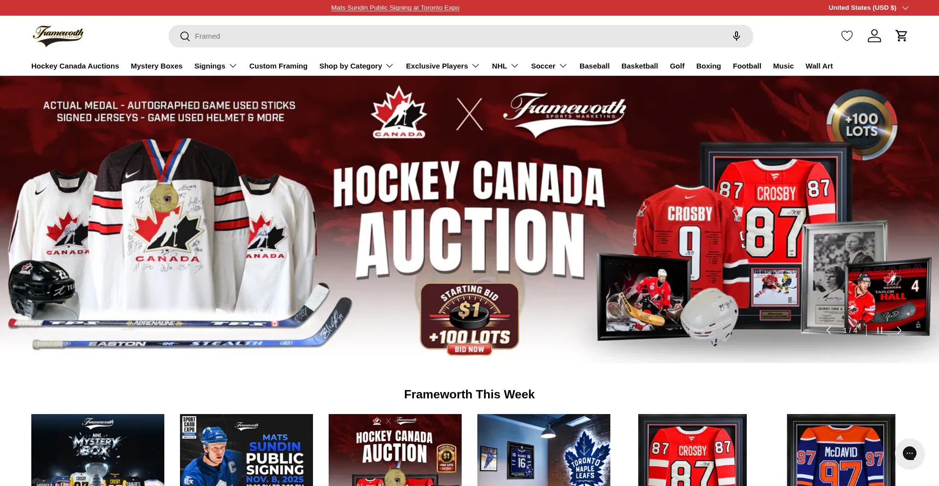 Shop authentic signed sports memorabilia from NHL, MLB, NBA, NLL, and CFL teams including exclusive Frameworth athletes like Sidney Crosby, Carey Price, John Tavares, Alek Manoa...