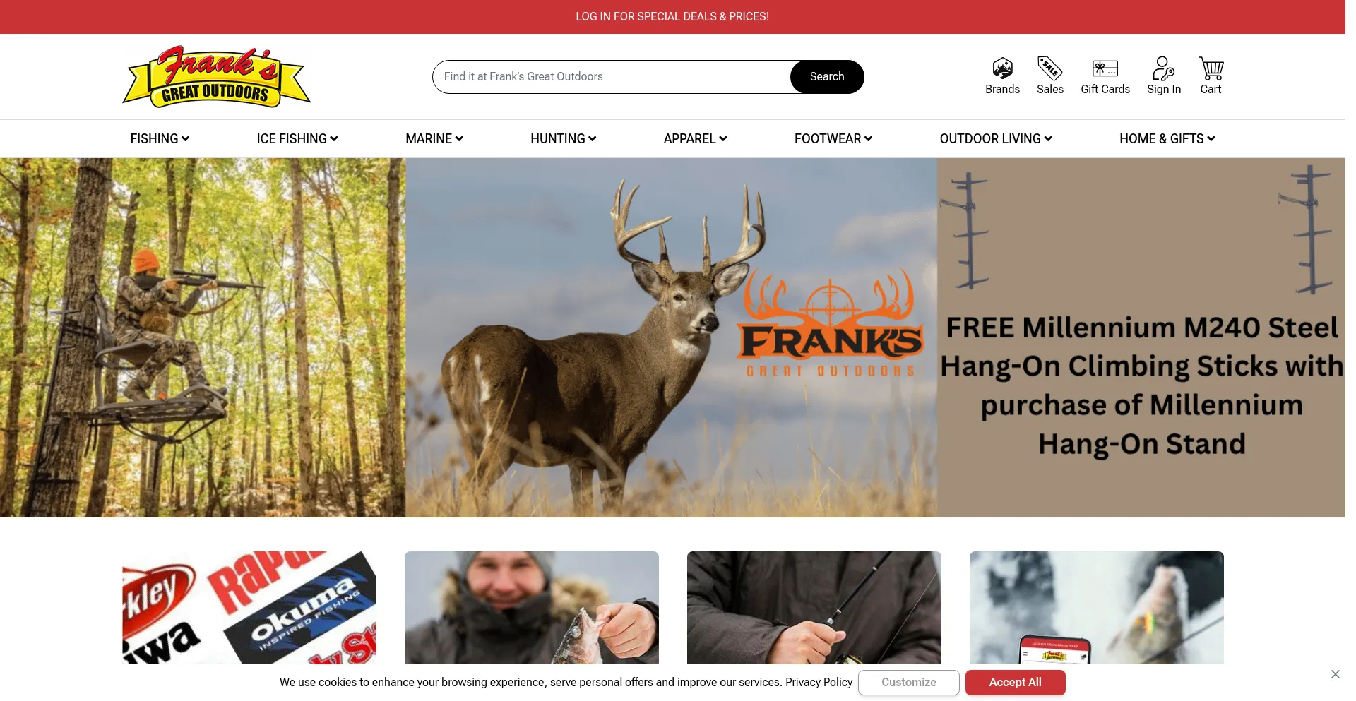 Franks Great Outdoors is a 30,000 sq ft retail store that houses products in departments such as fishing, hunting, marine electronics/products, clothing, cooking, and gifts. We ...