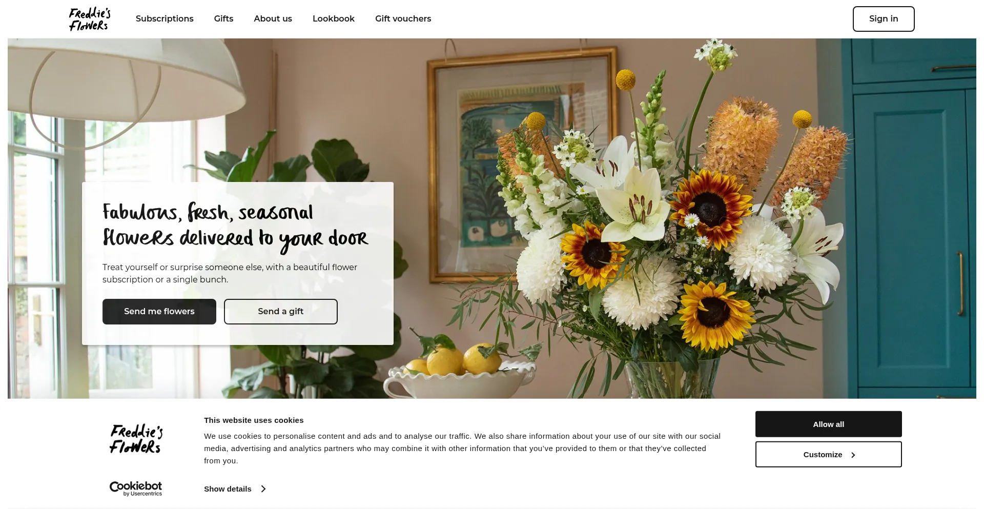 该网站实现符合GDPR或CCPA等隐私法规的cookie同意机制。这表明 freddiesflowers.com 遵守数据保护标准并为用户提供对个人数据收集实践的控制。