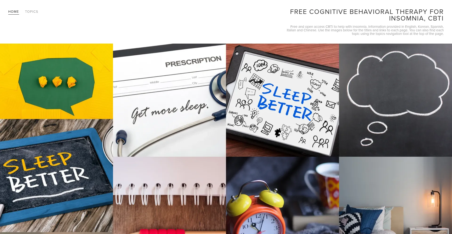 This website provides the educational content of cognitive behavioral therapy for insomnia, CBTi, at no cost. It is a free CBTi resource.