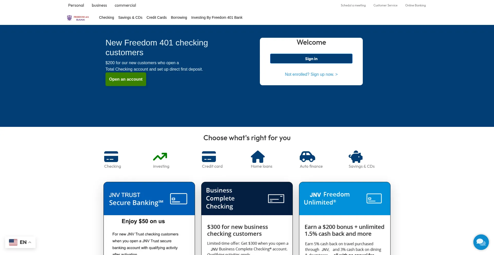 Freedom 401 Bank online; credit cards, mortgages, retirement planning, auto loans, investing & commercial banking, checking and business banking.
