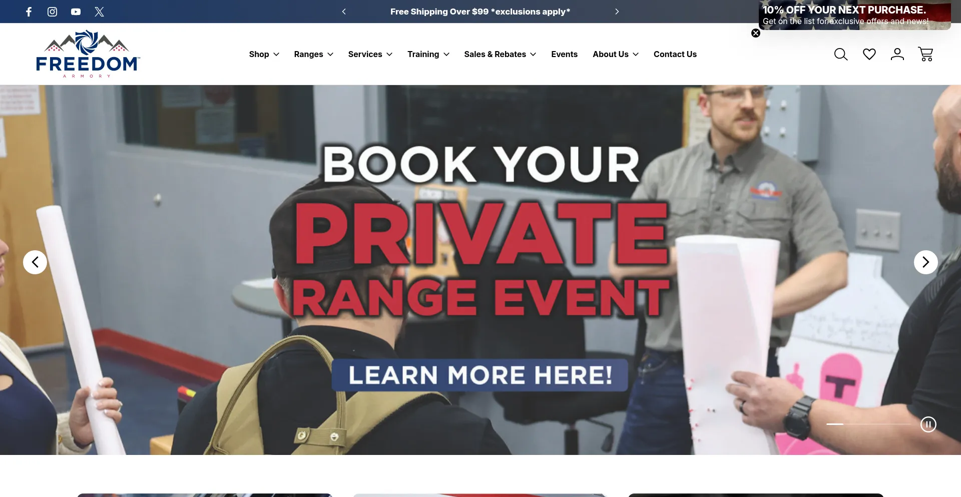 网站上存在社交媒体链接表明 freedomarmory.com 在社交媒体上维护官方账户,这是可信度和参与度的积极信号。