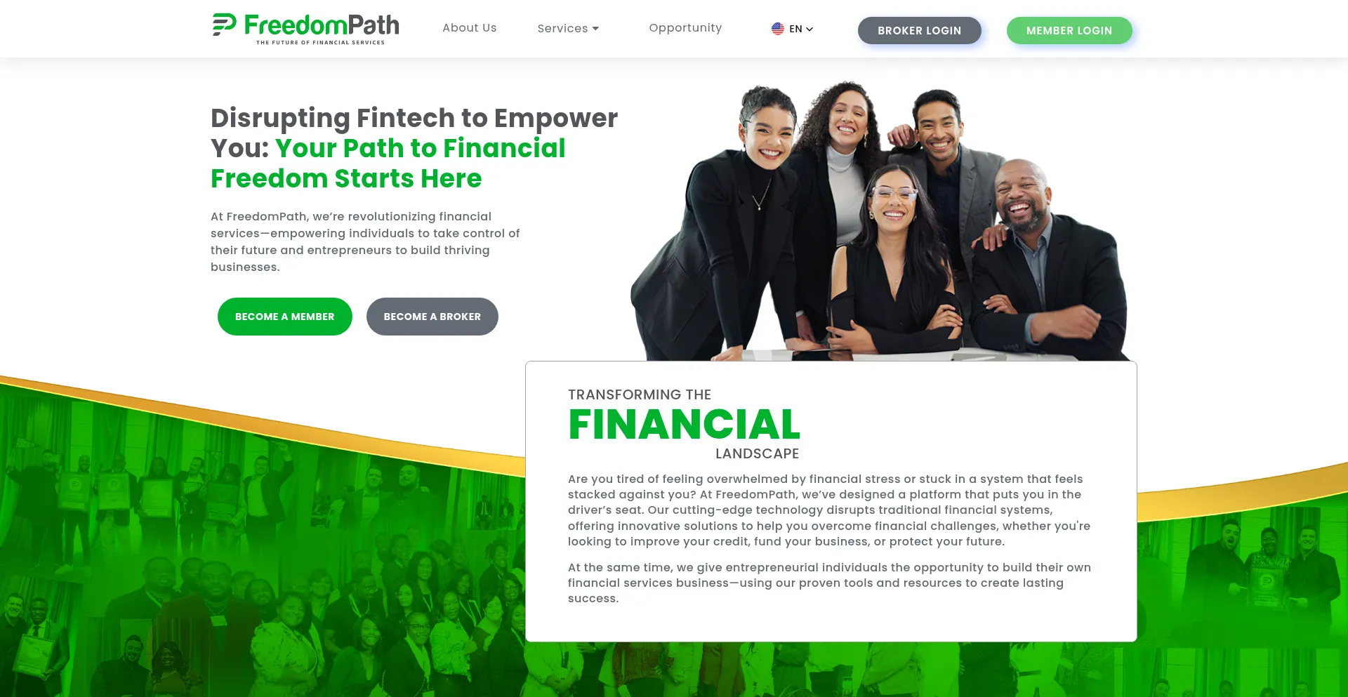At FreedomPath, we’re revolutionizing financial services—empowering individuals to take control of their future and entrepreneurs to build thriving businesses.
