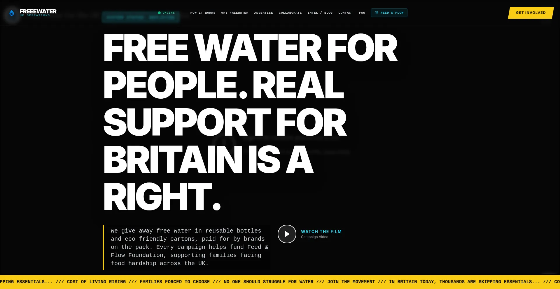 Free water for people. Real support for Britain. We give away free carton water, paid for by brands on the pack.