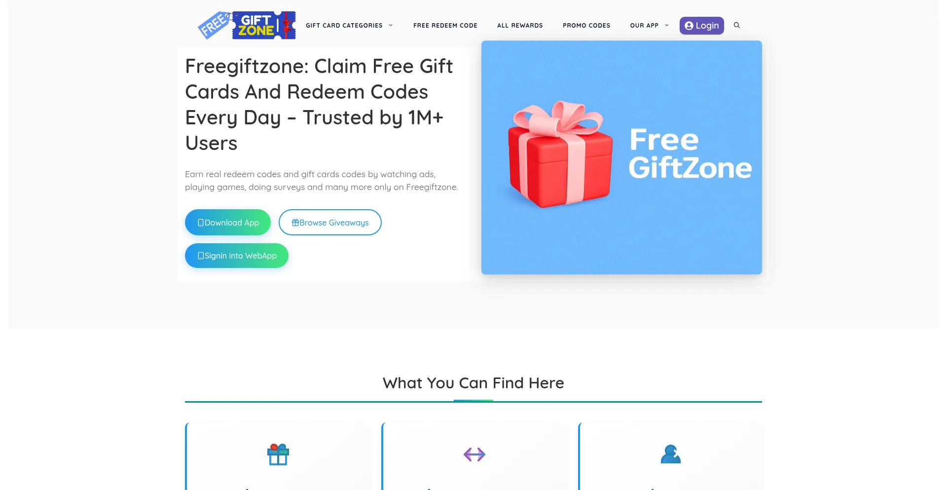 freegiftzone.com 提供 Android 设备移动应用程序,表明平台存在已扩展到网络服务之外。