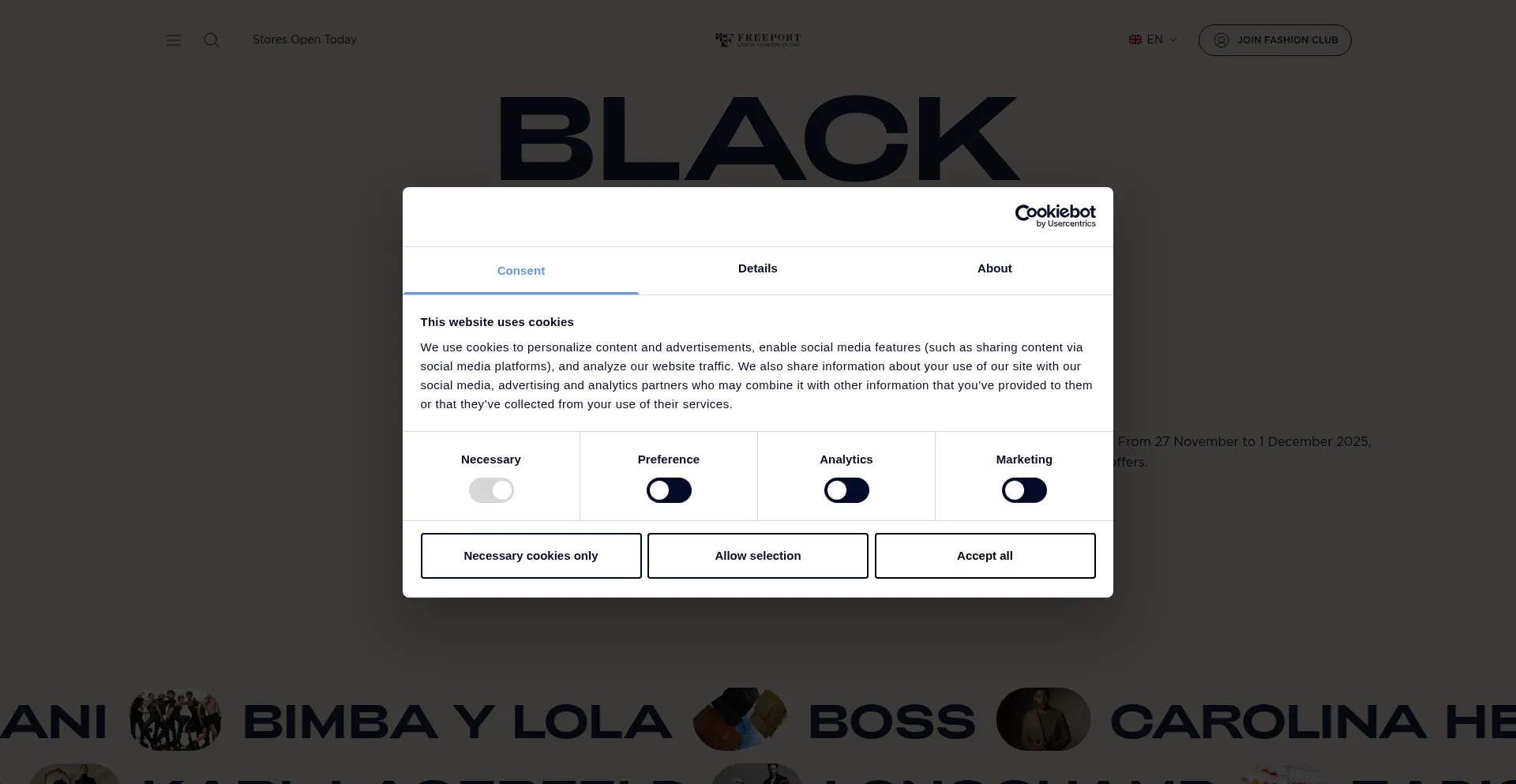 该网站实现符合GDPR或CCPA等隐私法规的cookie同意机制。这表明 freeportfashionoutlet.pt 遵守数据保护标准并为用户提供对个人数据收集实践的控制。