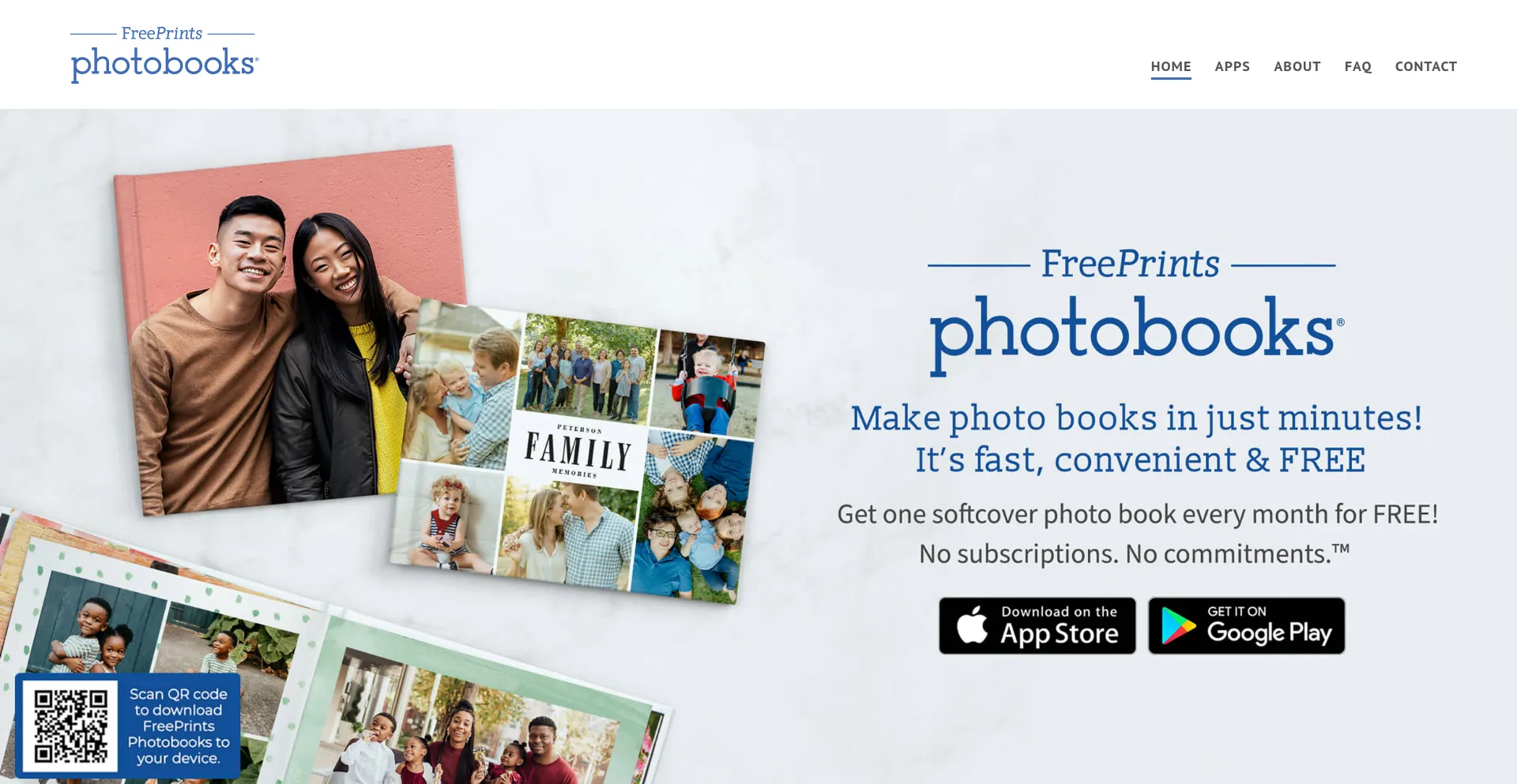 freeprintsphotobooks.com 提供 Android 设备移动应用程序,表明平台存在已扩展到网络服务之外。
