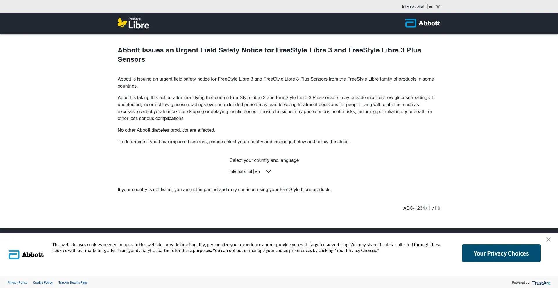 Abbott is issuing an urgent field safety notice for FreeStyle Libre 3 and FreeStyle Libre 3 Plus Sensors from the FreeStyle Libre family of products in some countries.