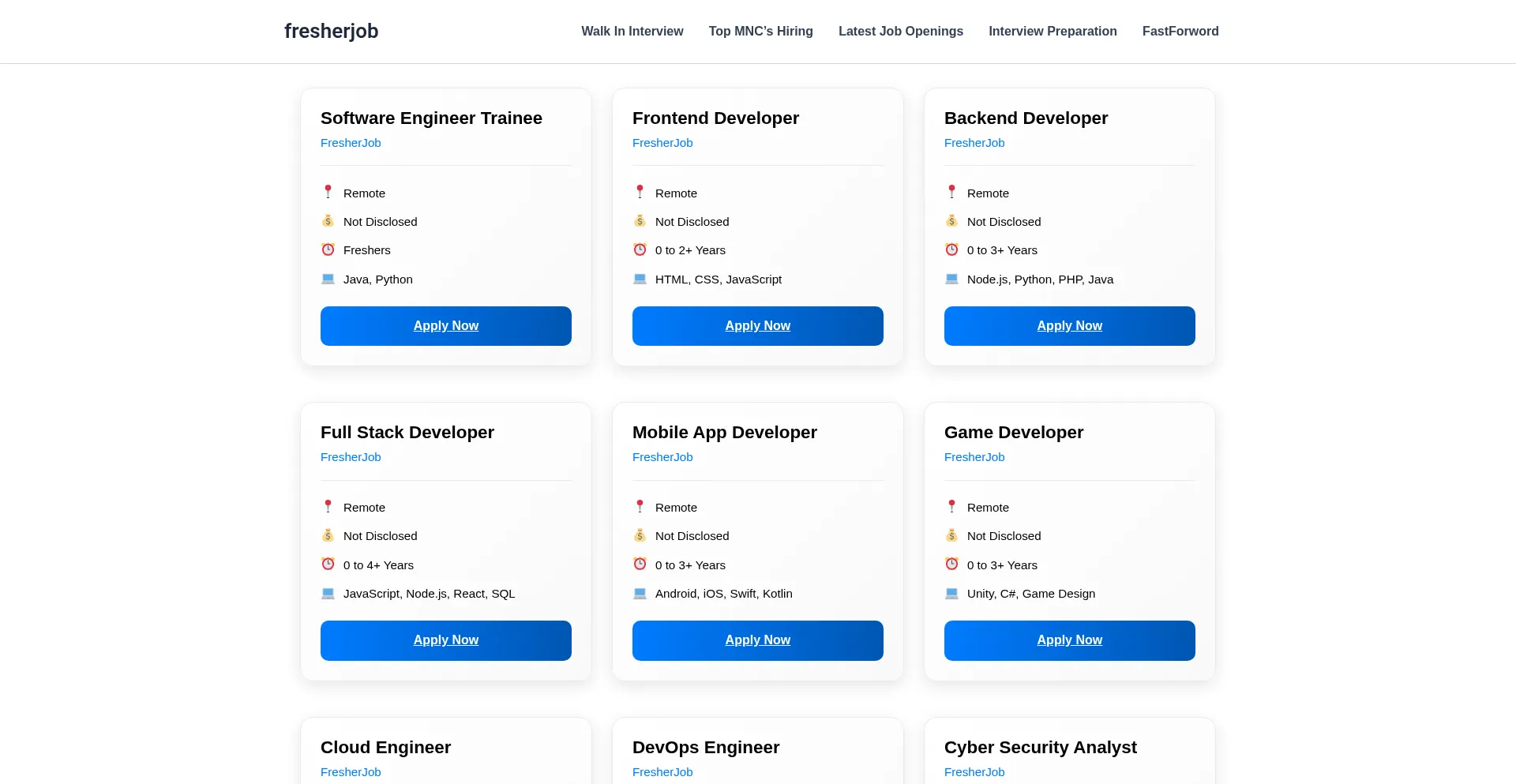 Kickstart your career with FresherJob.org. Explore 1000s of verified IT jobs, internships, and remote roles tailored for freshers and recent graduates.
