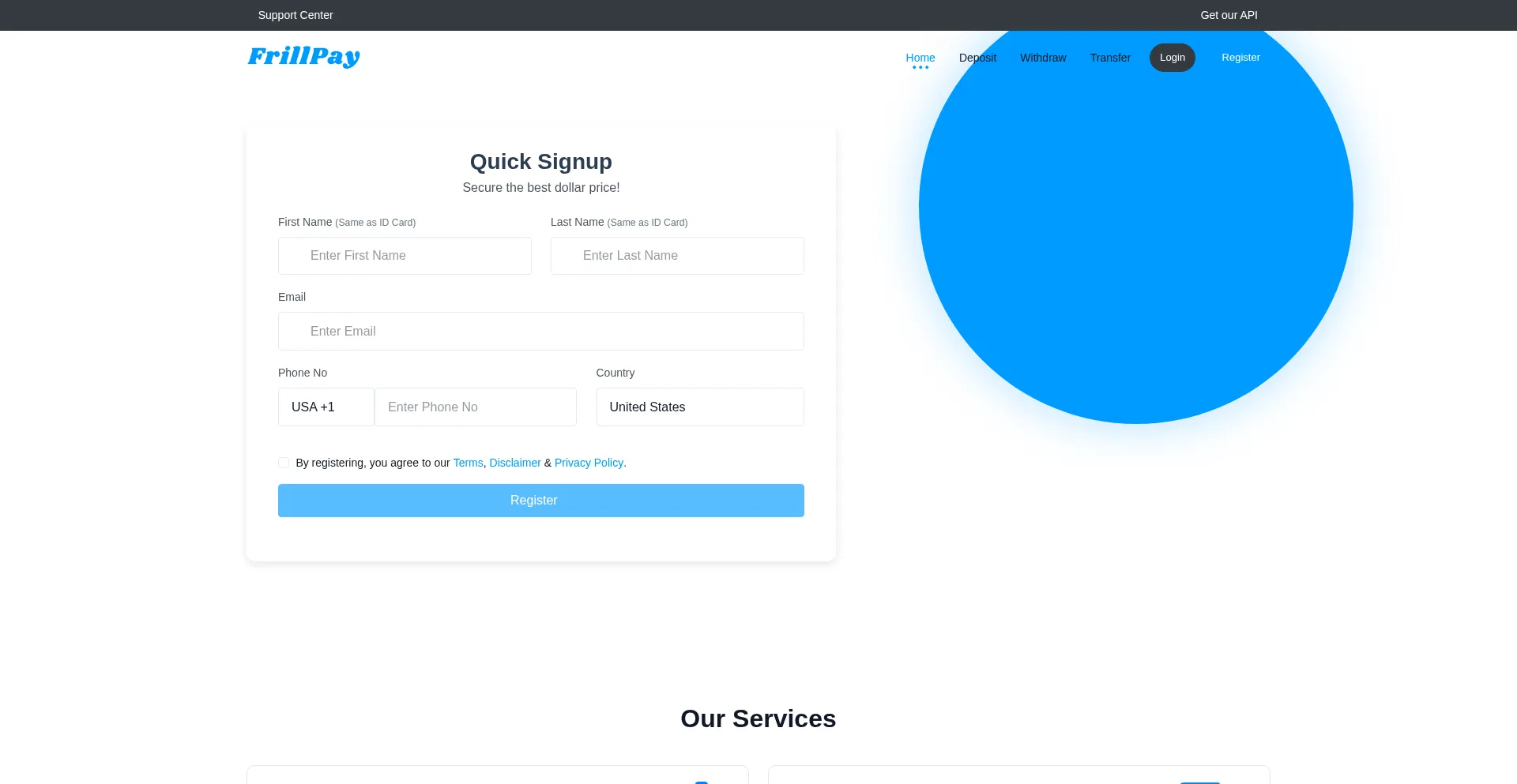 该网站实现数据收集表单,请求个人信息,包括姓名、电子邮件地址、电话号码或其他敏感详细信息。用户应验证 frillpay.com 的合法性并在提交个人数据前查看隐私政策。