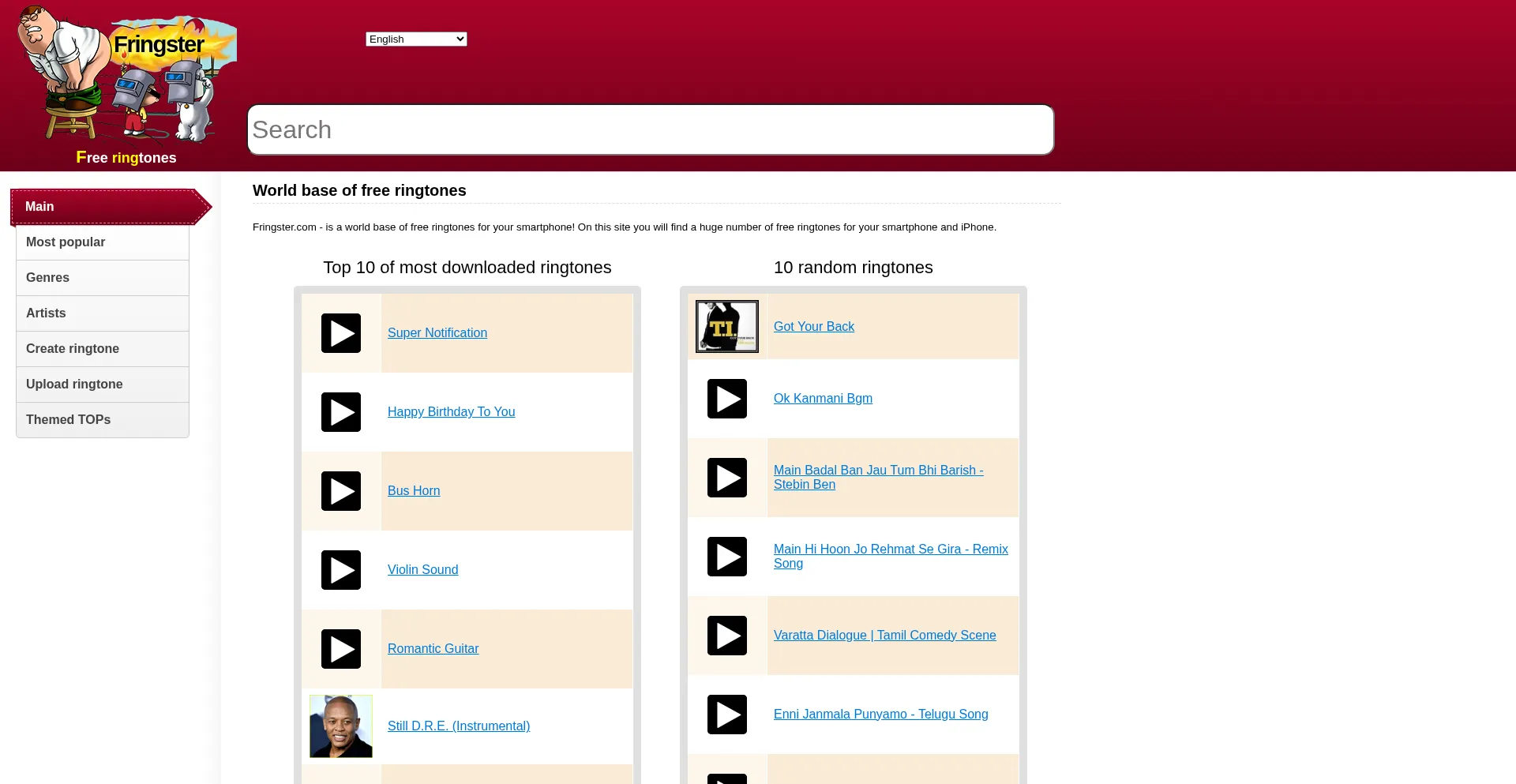Fringster.com - is a world base of free ringtones for your smartphone! | World base of ringtones