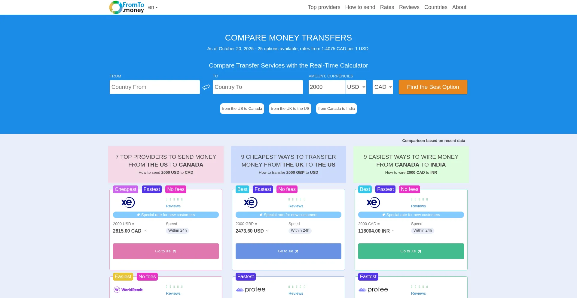 Compare international money transfers. Find out how to transfer money abroad - FromTo.money