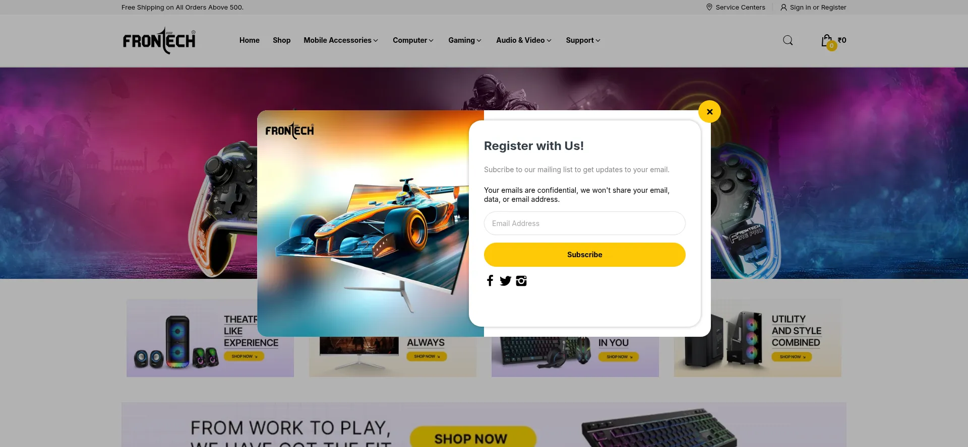 Shop monitors, motherboards, RAM, SSDs, keyboards, speakers, and gaming gear at Frontech Online. Free shipping on orders above ₹500. Secure checkout and warranty support.
