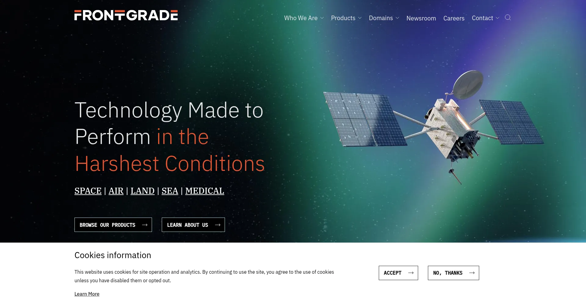 Frontgrade offers innovative radiation-hardened and high-reliability solutions for aerospace, defense, and industry, driven by quality and expertise.