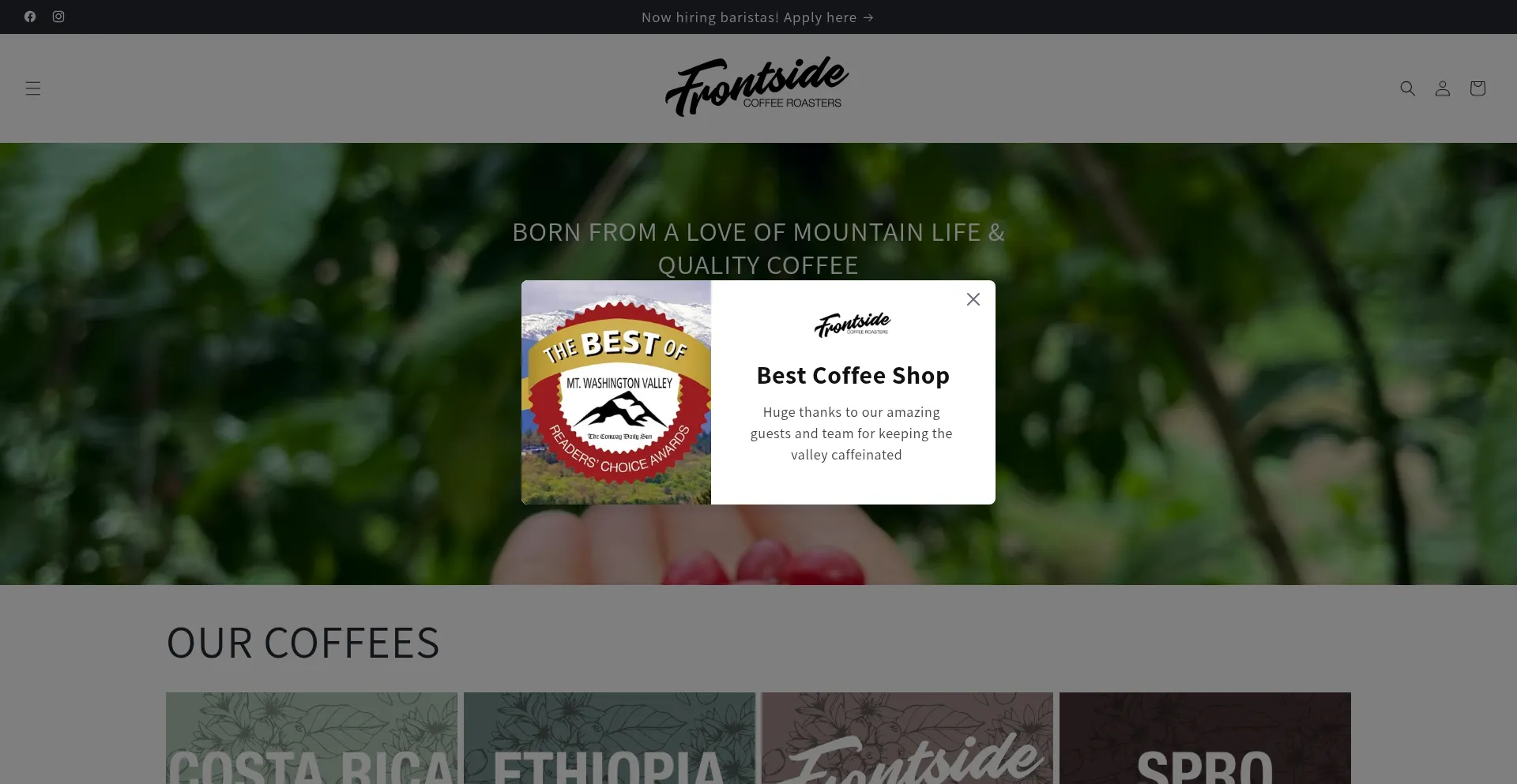 网站上存在社交媒体链接表明 frontsidecoffee.com 在社交媒体上维护官方账户,这是可信度和参与度的积极信号。