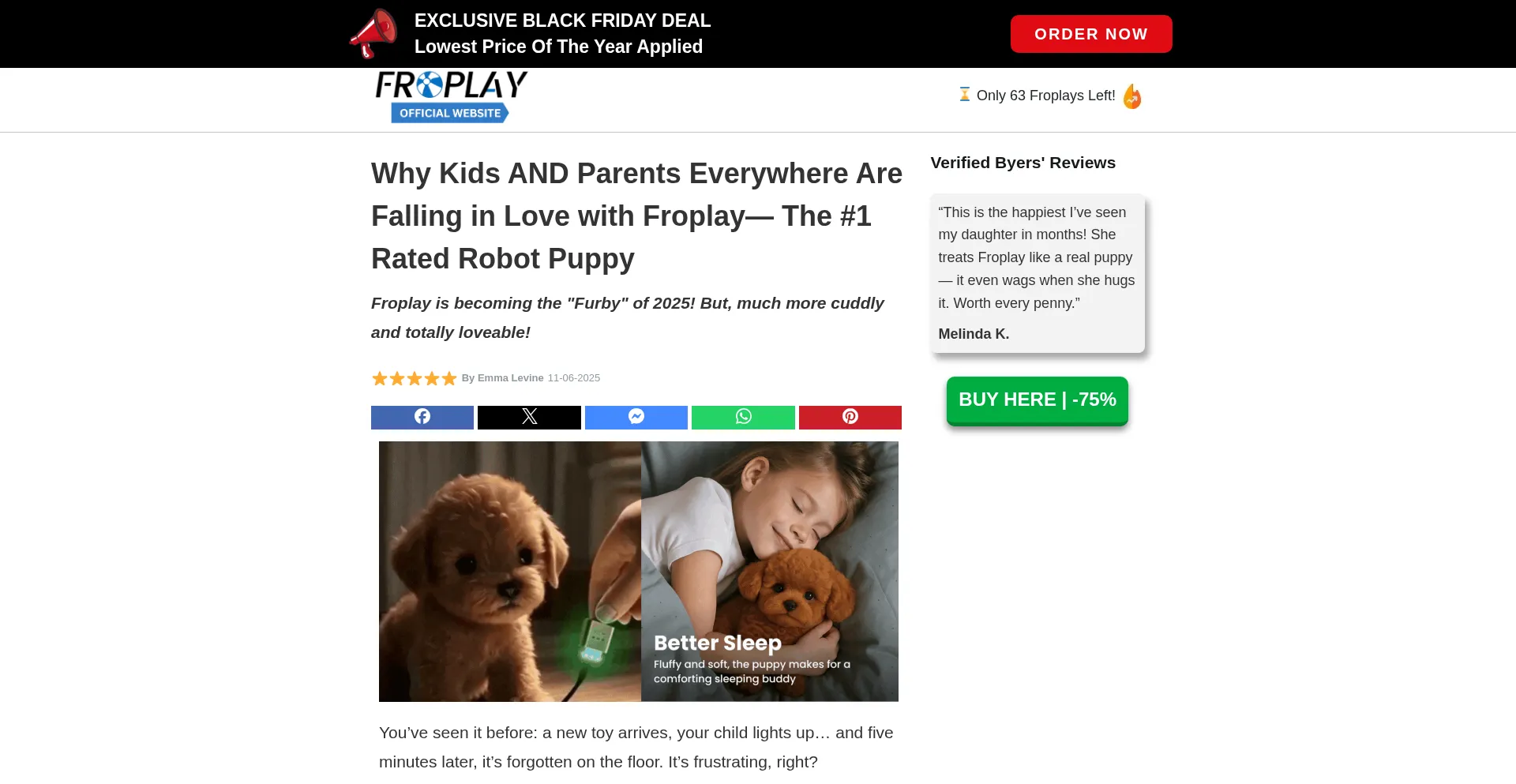 Introducing Froplay: the cuddly, screen-free robot puppy that feels alive. Get up to 70% off this AI best friend in our Black Friday exclusive sale. (134 Characters)