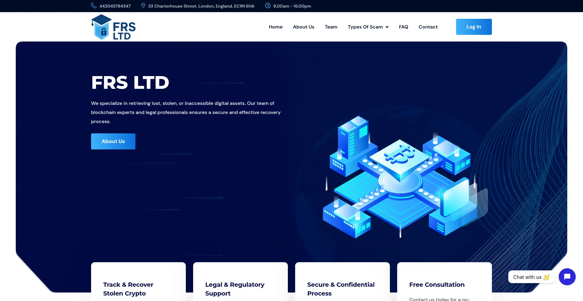 网站 frs-ltd.cc 宣传针对丢失或被盗资产的资金恢复服务。虽然一些在应急费用结构上运营,其他可能需要预付款,这可能表明欺诈运营。在聘请此类服务前验证凭据和监管合规性。